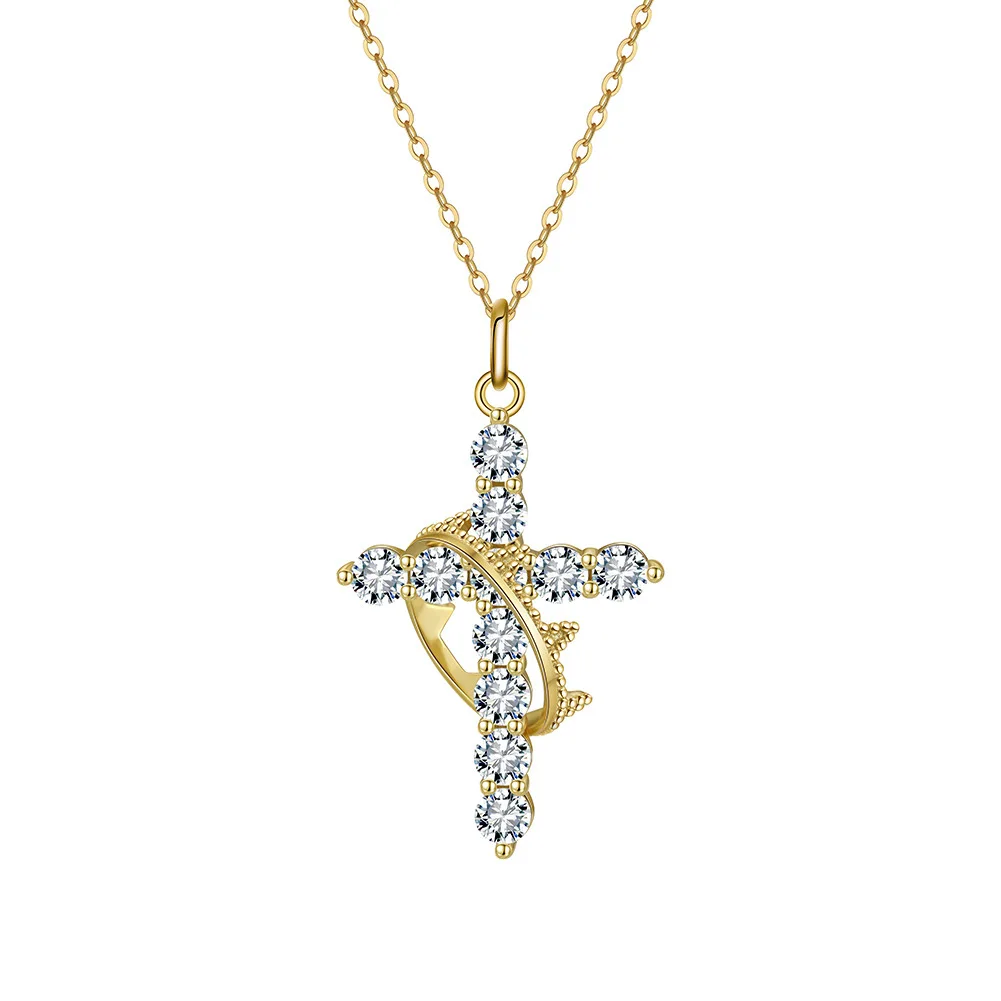 Women’s 14K Gold Plated Crown Cross Pendant Necklace 925 Sterling Silver Cubic Zirconia Faith Cross Fine Jewelry