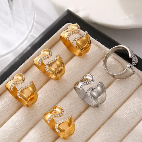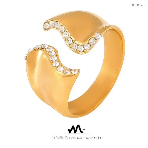 Product Name: Women’s Adjustable Open Ring 18K Plated Stainless Steel Trendy Wedding Jewelry with Casual Style for Parties and Gifts