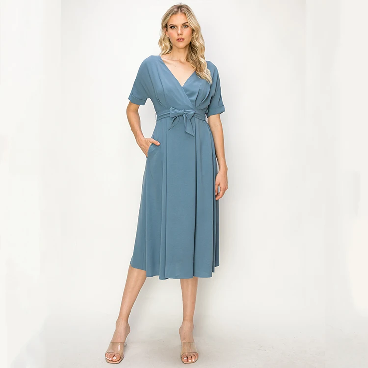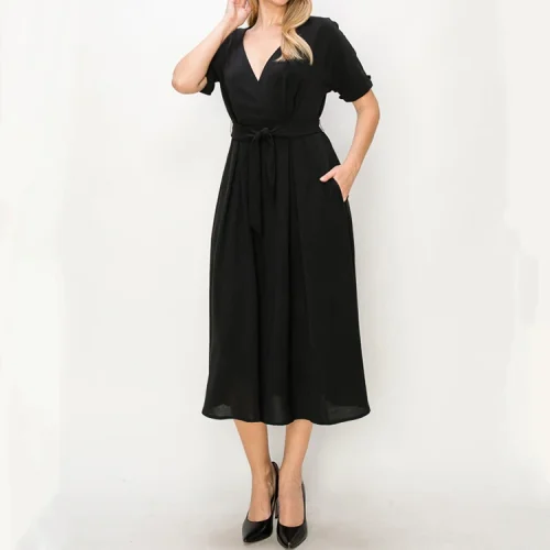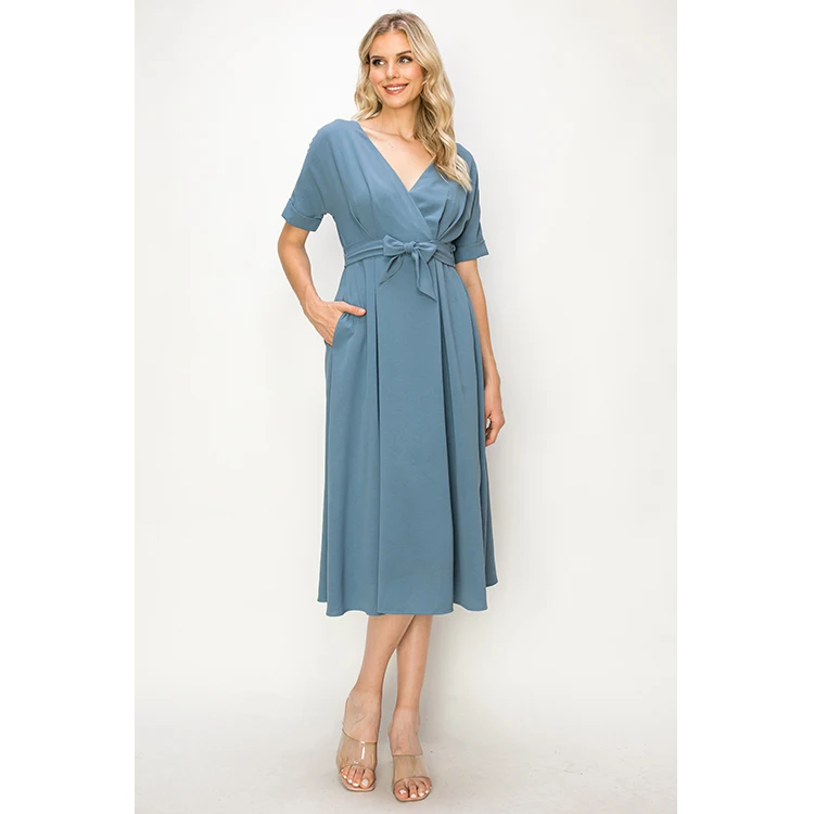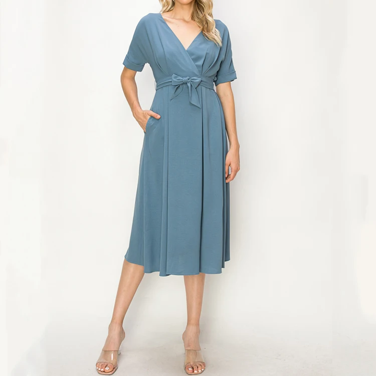 Product Name: Women’s Anti-Wrinkle V Neck Midi Dress izable Polyester Woven Light for Autumn/Summer Daily Wear