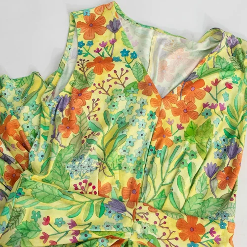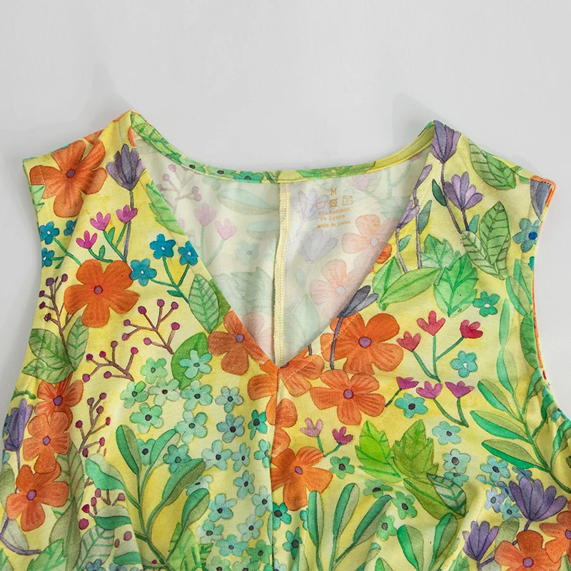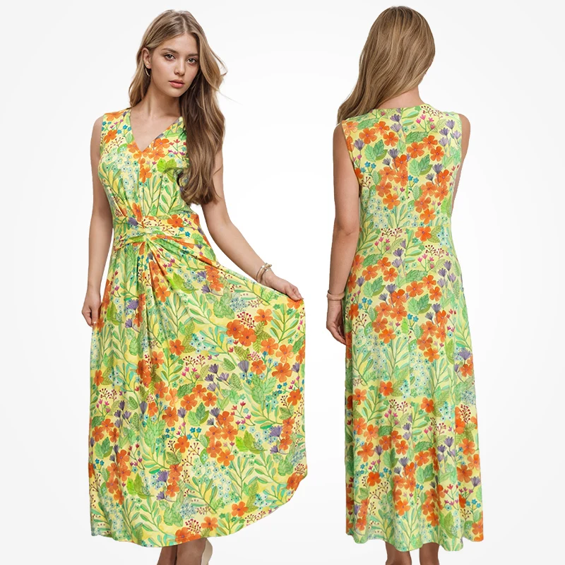 Product Name: Women’s Bamboo Fiber Floral Midi V-neck Dress Eco Friendly Bamboo Fiber Casual Summer Dresses
