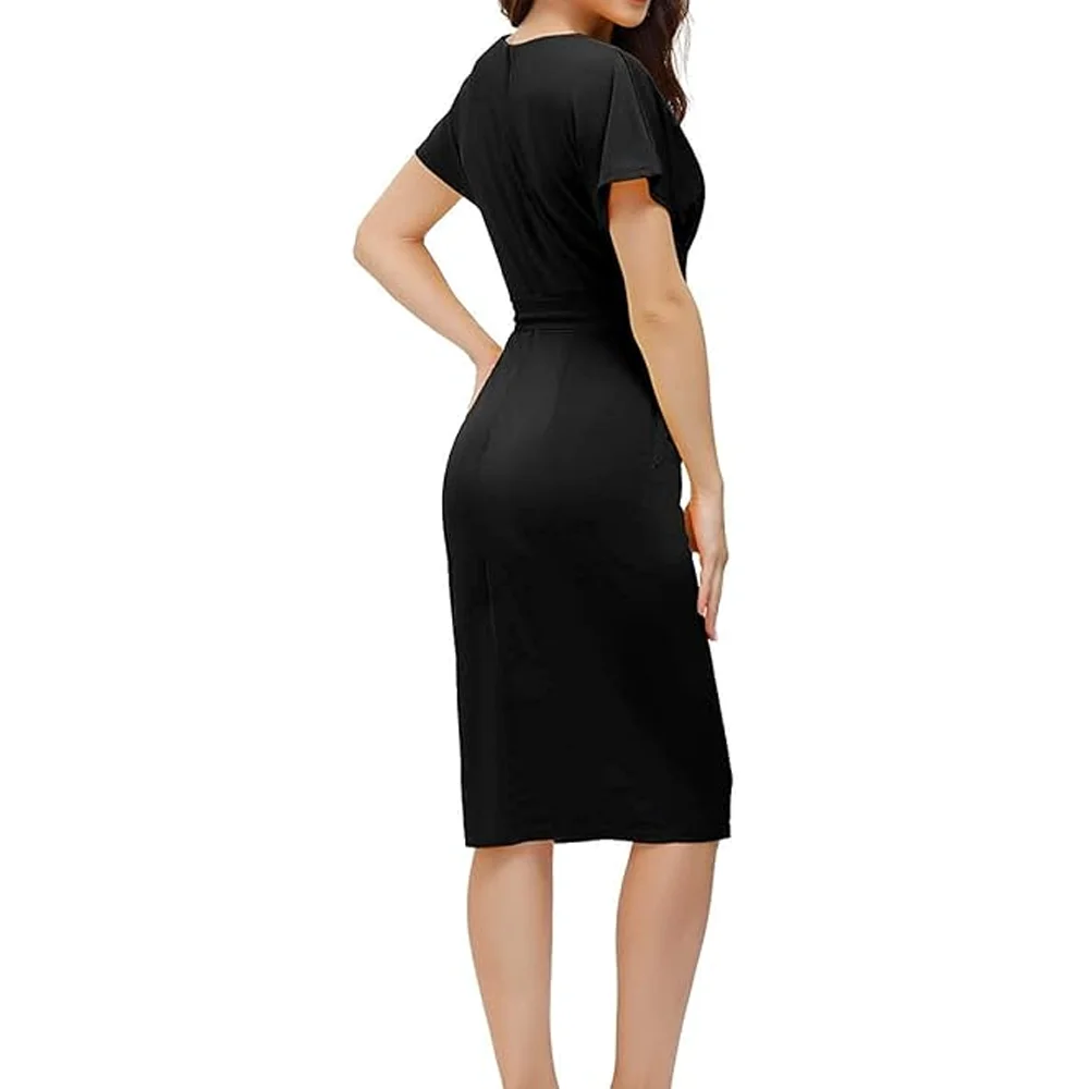 Product Name: Women’s Bodycon Pencil Dress Office Wear to Work Dresses with Pocket Belt Women’s Curved Waist Seam Crepe Workwear Dress