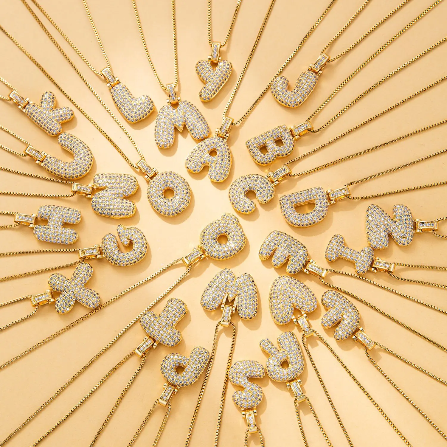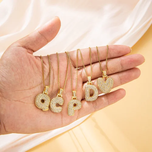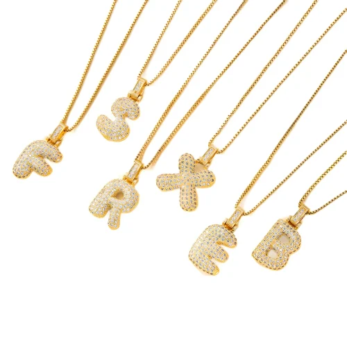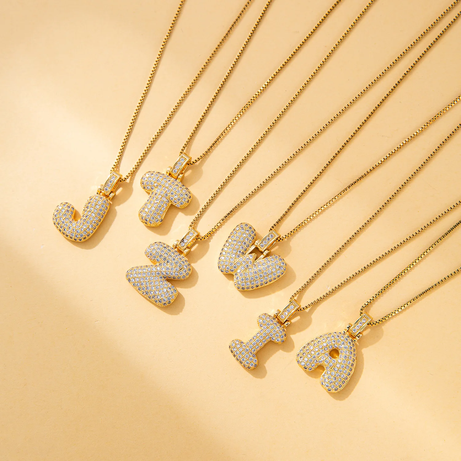 Product Name: Women’s Bubble Letter Necklace Gold Plated Stainless Steel Zircon Chunky Initial Name Balloon Alphabet Pendant Necklace