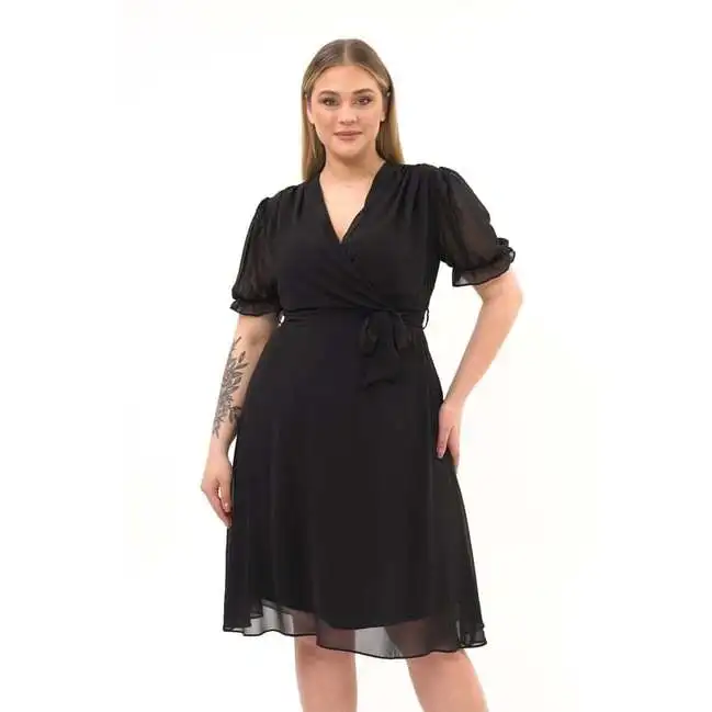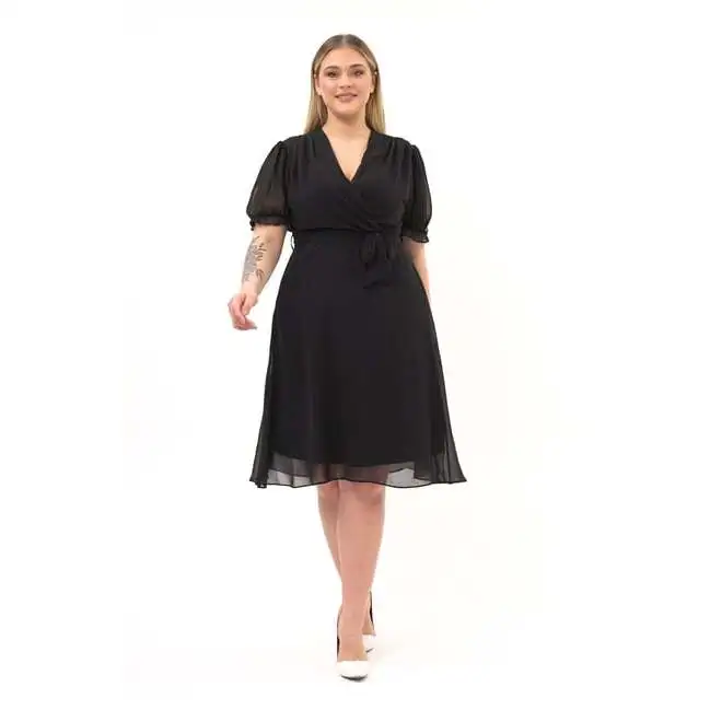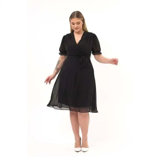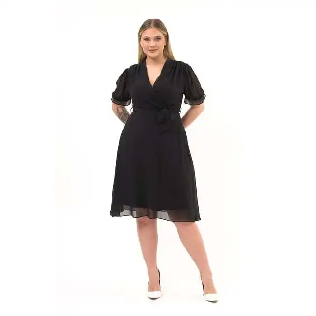 Product Name: Women’s Double Breasted Midi Length Chiffon Dress Plus Size Polyester Belted Style 4255/110 Premium Quality Stylish Trendy Sexy Casual Wear