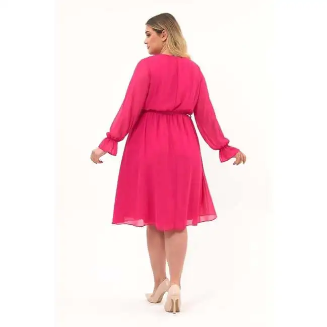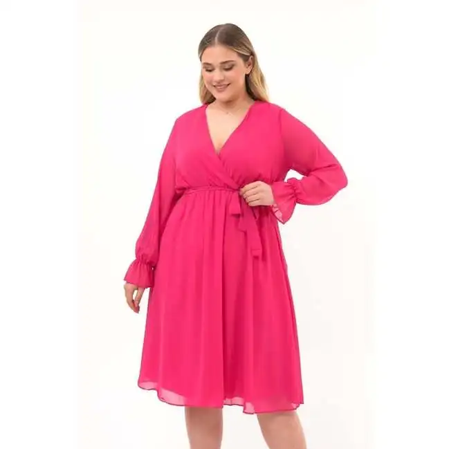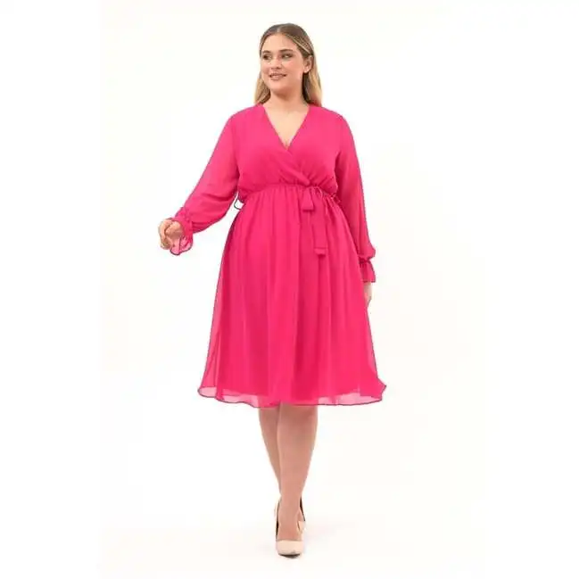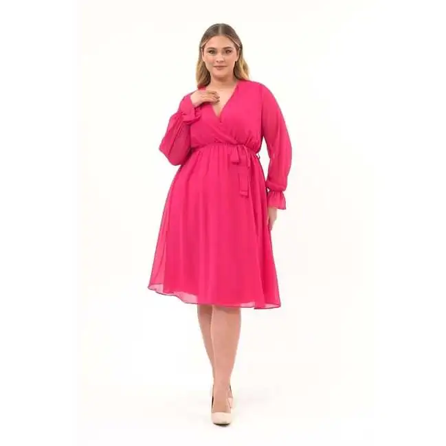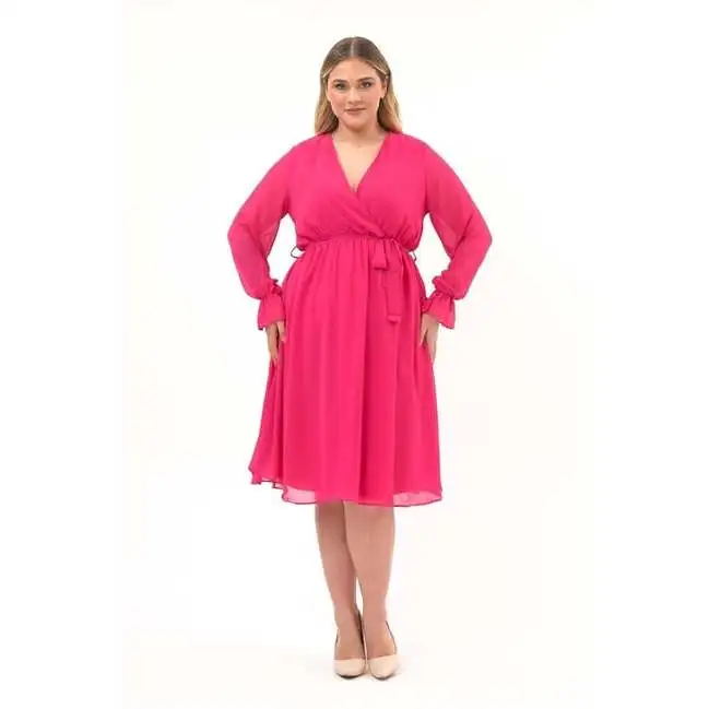Women’s Double Breasted Midi-Length Chiffon Dress Long Sleeve Plus Size 4450/110 Sexy Casual Wear Natural Waistline ODM Supplied