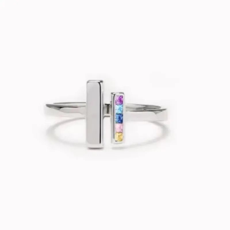 Product Name: Women’s Double T Ring Classic Fashion Jewelry with Carved Crystal Silver Midi Rings for Stacking for Girls