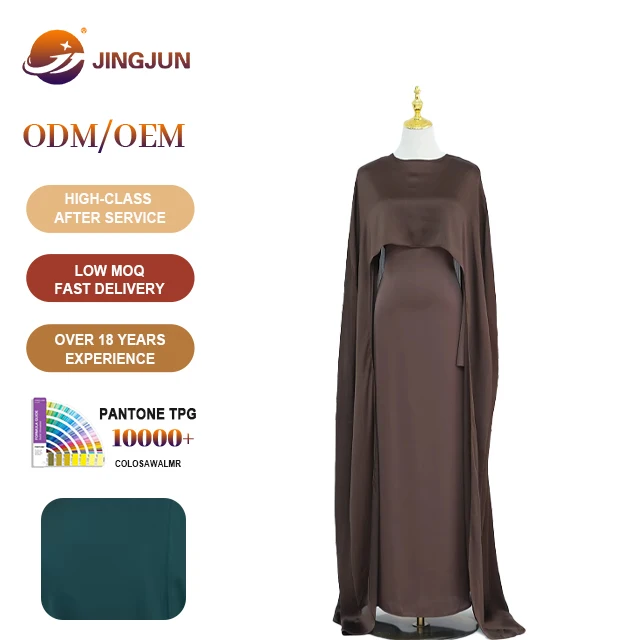 Womens Dresses Islamic Clothing Modest Dresses Satin Abaya Muslim Women Dress With Adjustable Belt and Polyester Cape Set