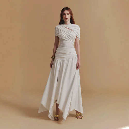 Product Name: Women’s Elegant High-End Temptation Y2K Pure Desire Dress Pleated Waist Top Irregular Skirt Casual Vacation Two-Piece Set Summer