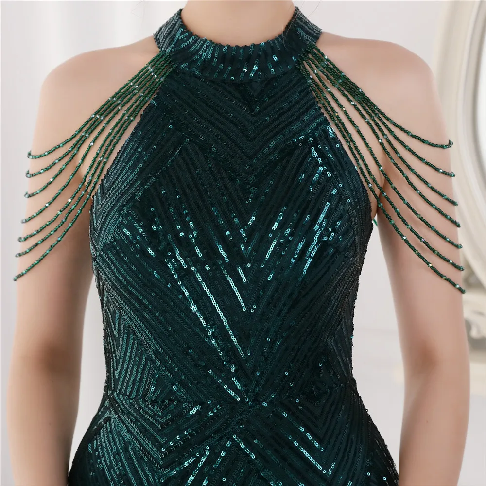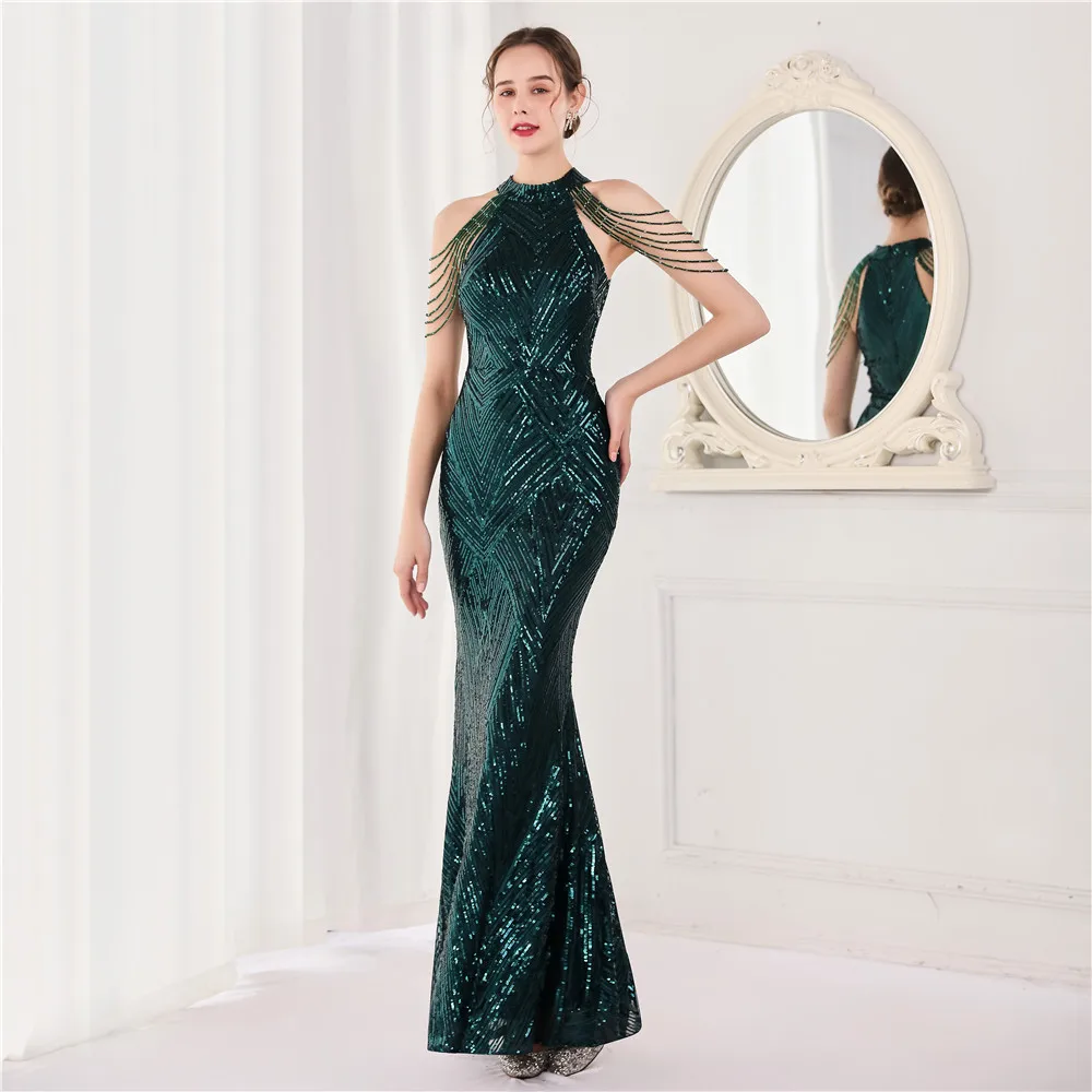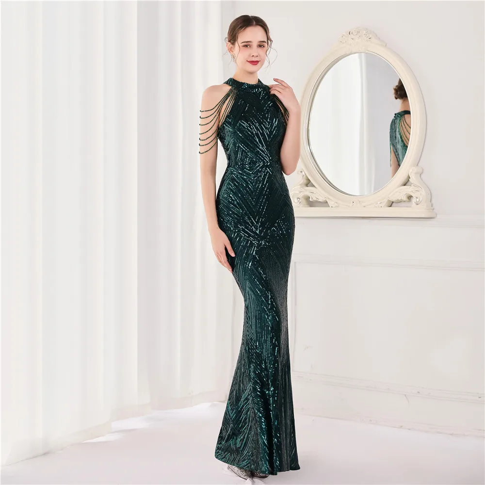 Product Name: Women’s Elegant Long Sequin Halter Dress Formal Luxury Evening Party Wedding Bridesmaid Plus-Size Sleeveless Mermaid Dresses