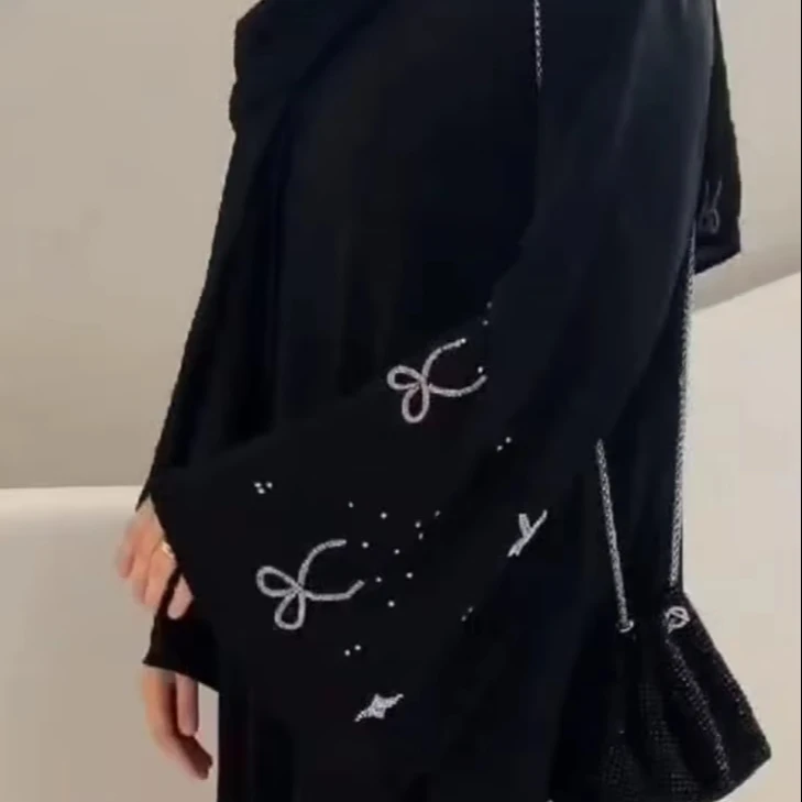 Product Name: Women’s Elegant Modest Hand Embroidered Bow Abayas Formal Dubai-Style Dresses Breathable Traditional Muslim Clothing Hand Work