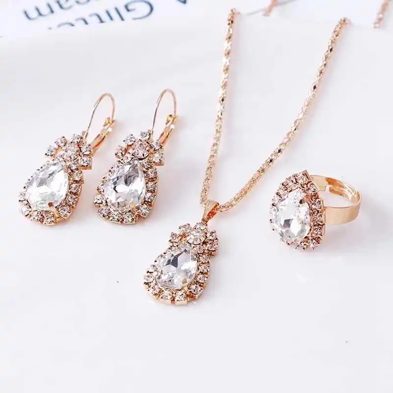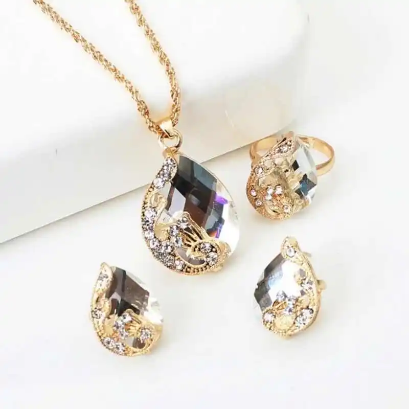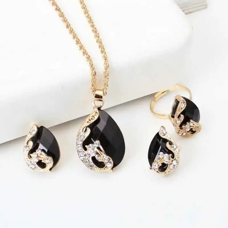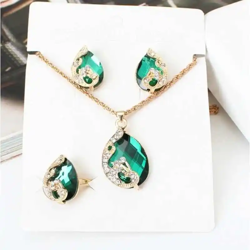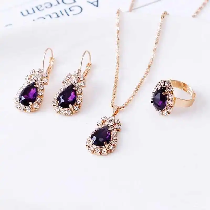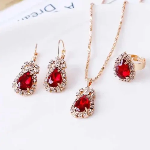 Product Name: Women’s Fashion Jewelry Set Bridal Gold Necklace Earrings Ring Luxury Red Crystal Pendant Necklace Wedding Jewelry 3 Pieces/Set