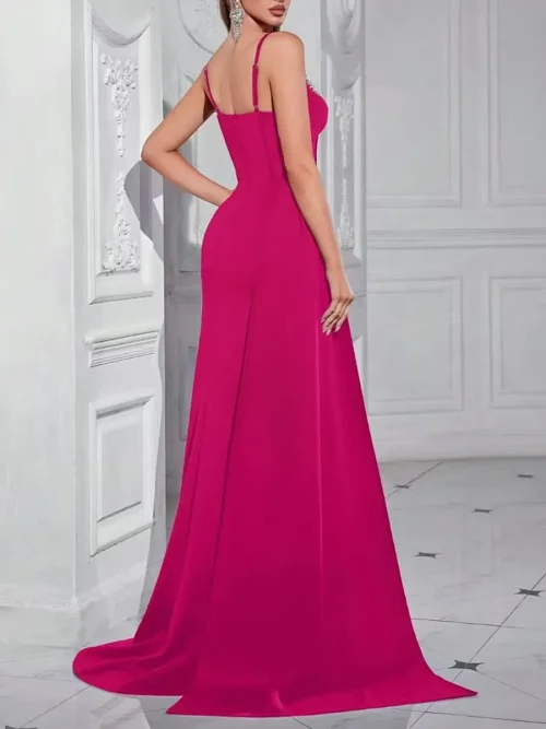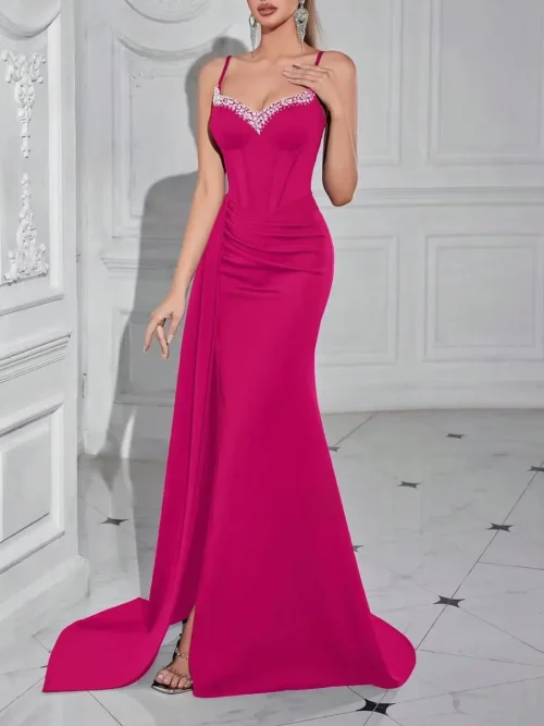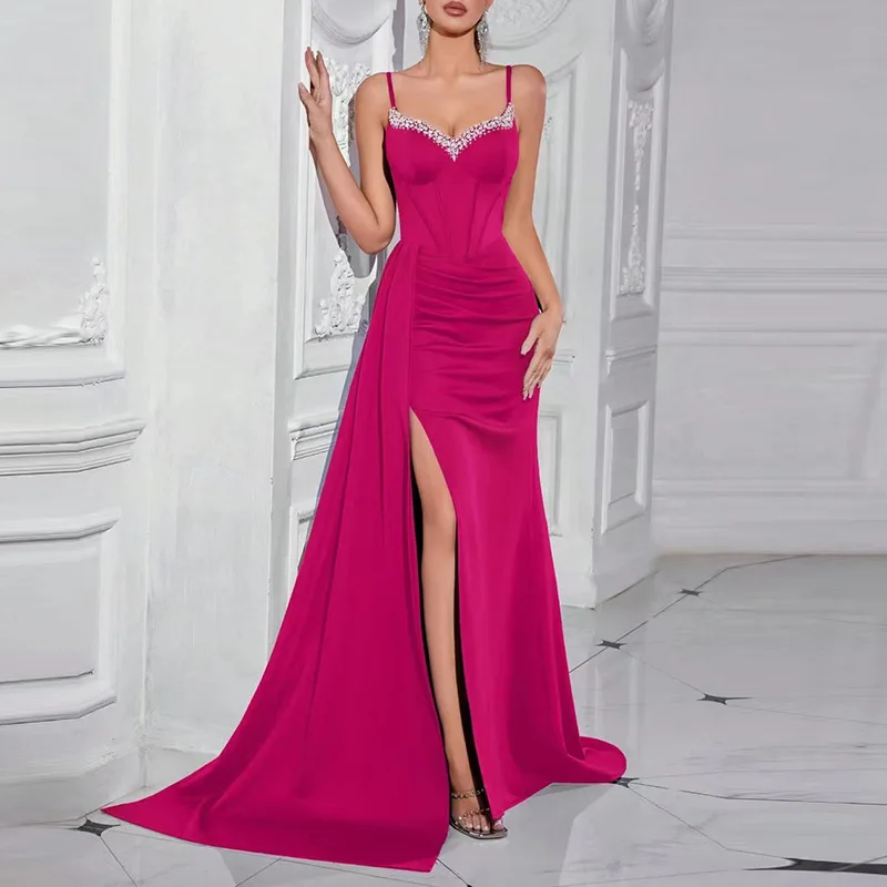 Product Name: Women’s Heavy-duty Temperament Suspenders Luxury Evening Dresses Nail Diamond Design Long Slit Elegant Party Dress