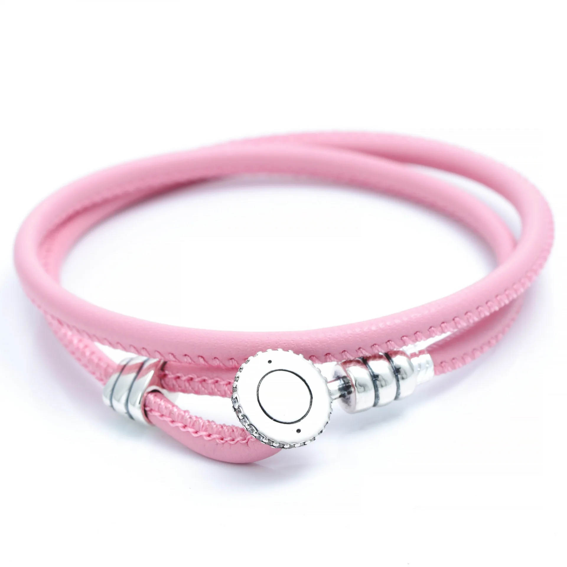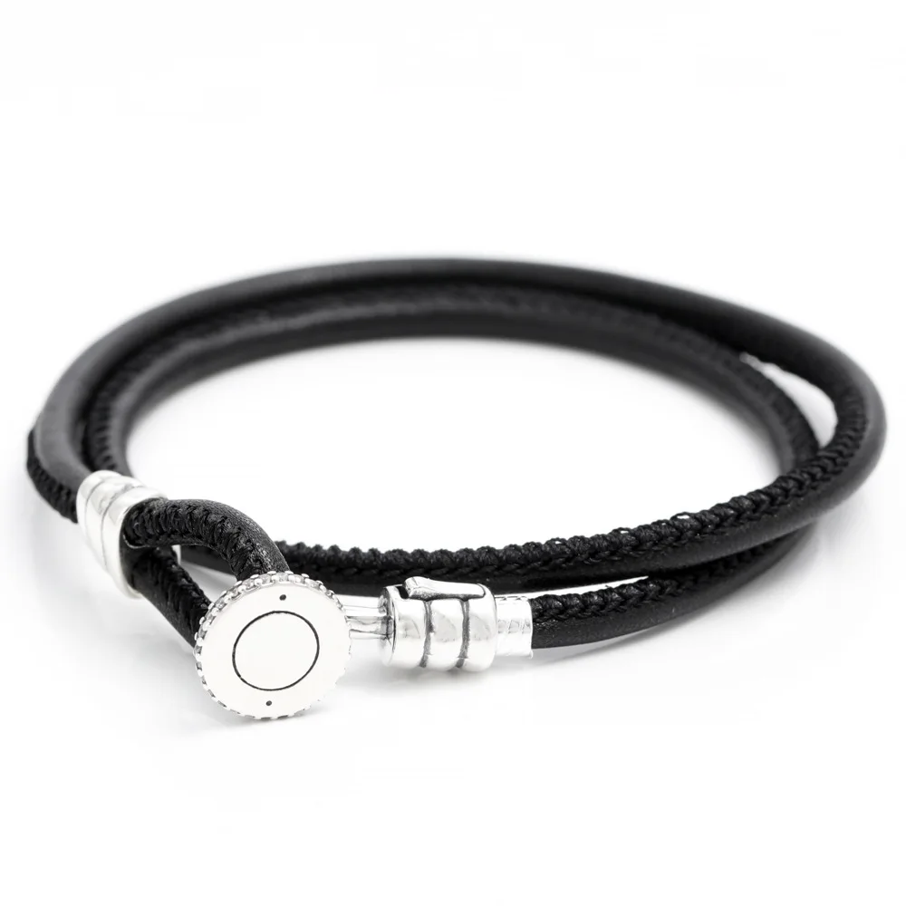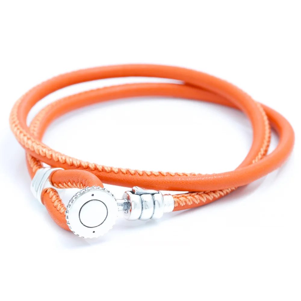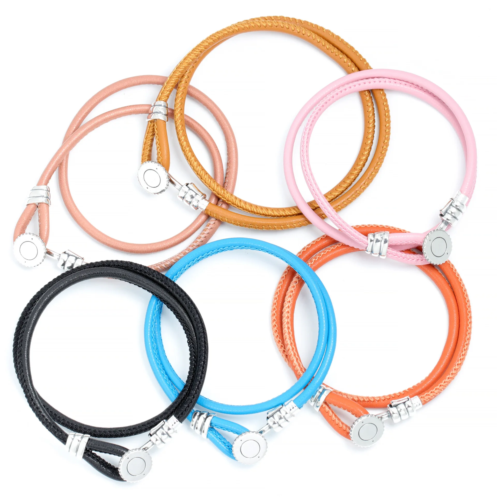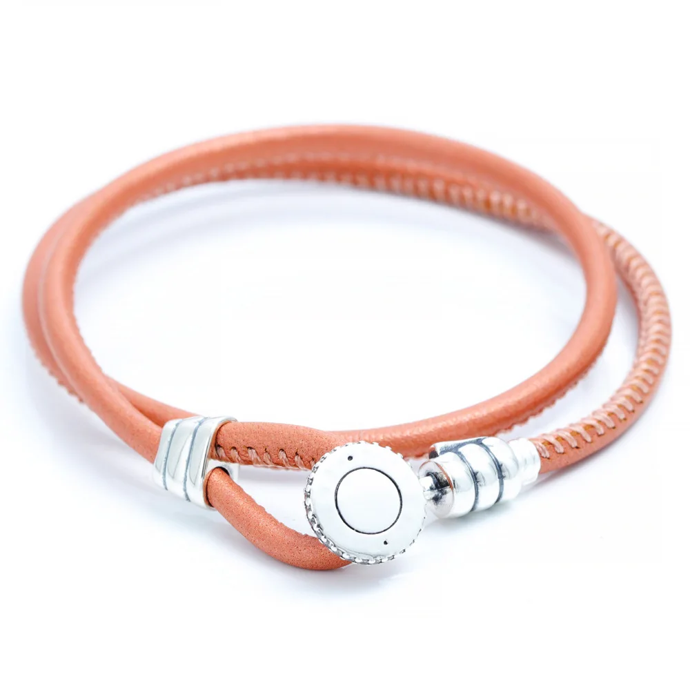 Product Name: Women’s High Quality 925 Sterling Silver Bracelet Leather Multi-Color Double Circle Adjustable for Children Heart-Shaped Pattern