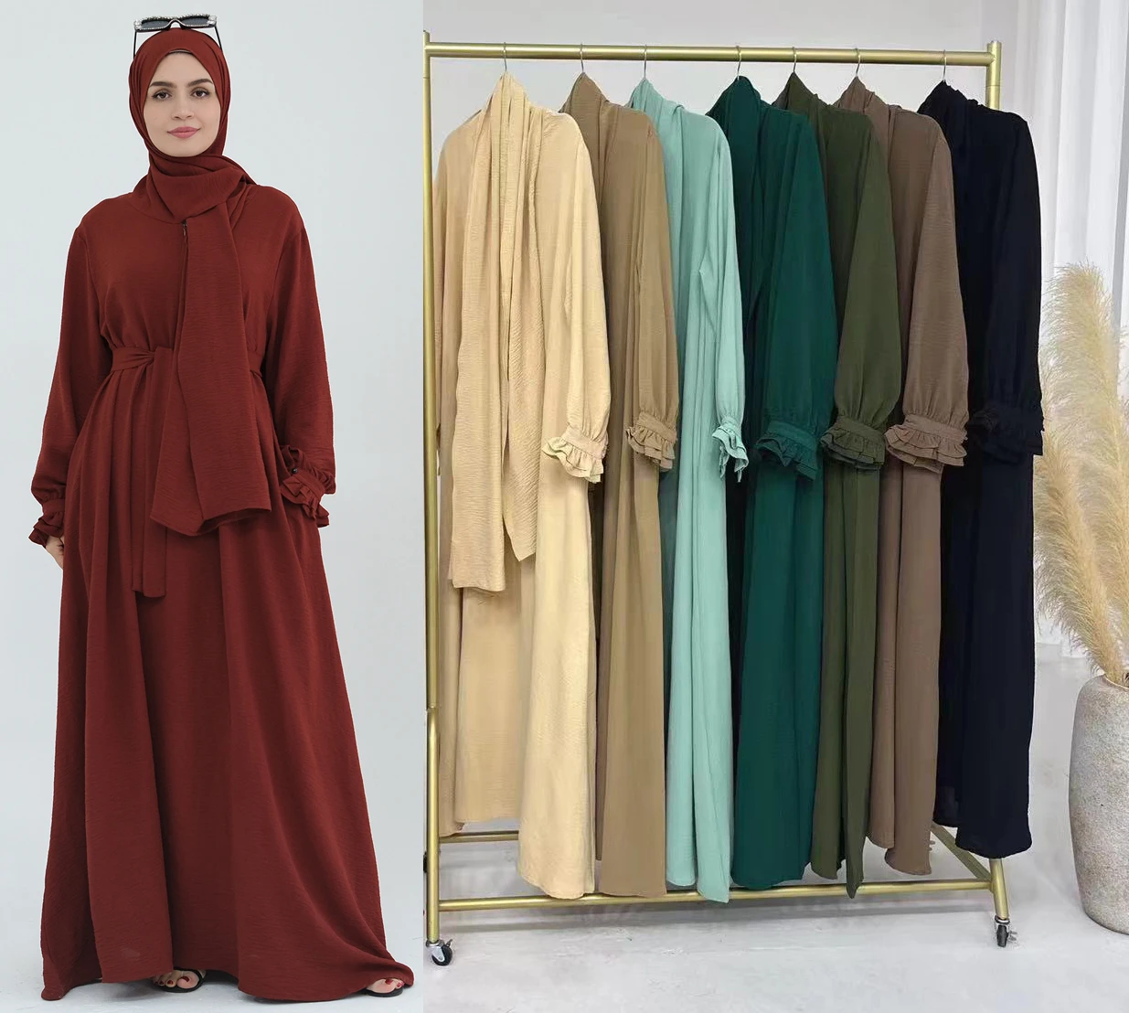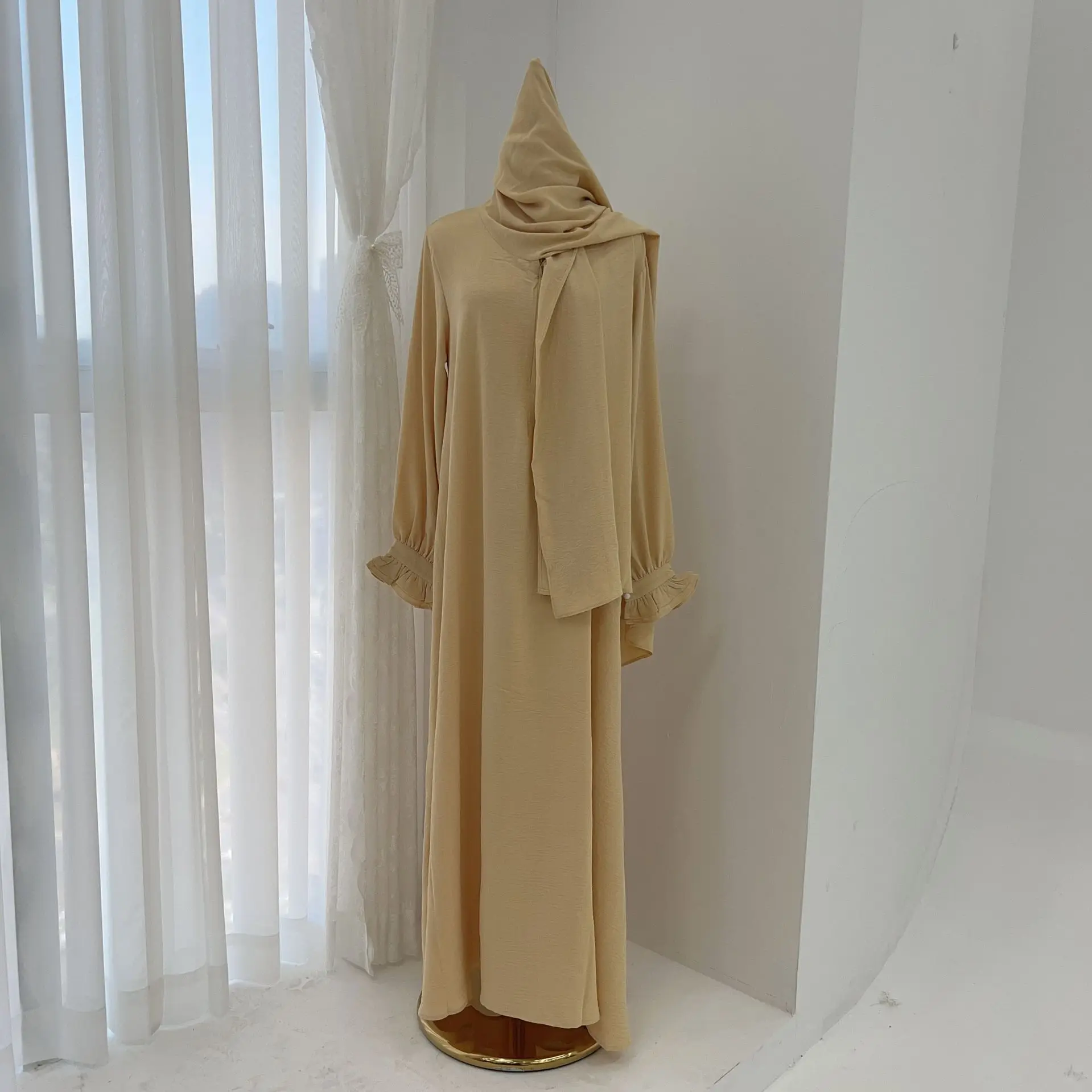 Women’s Islamic Clothing New Hoodie Abaya Dresses Plus Size Daily Wear Plain Abaya Casual Dresses Attached Hijab Summer