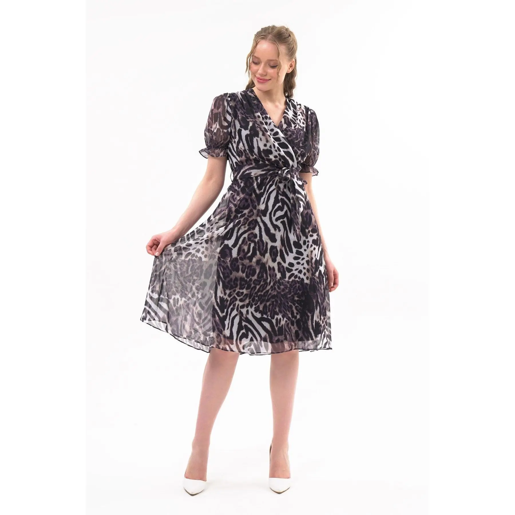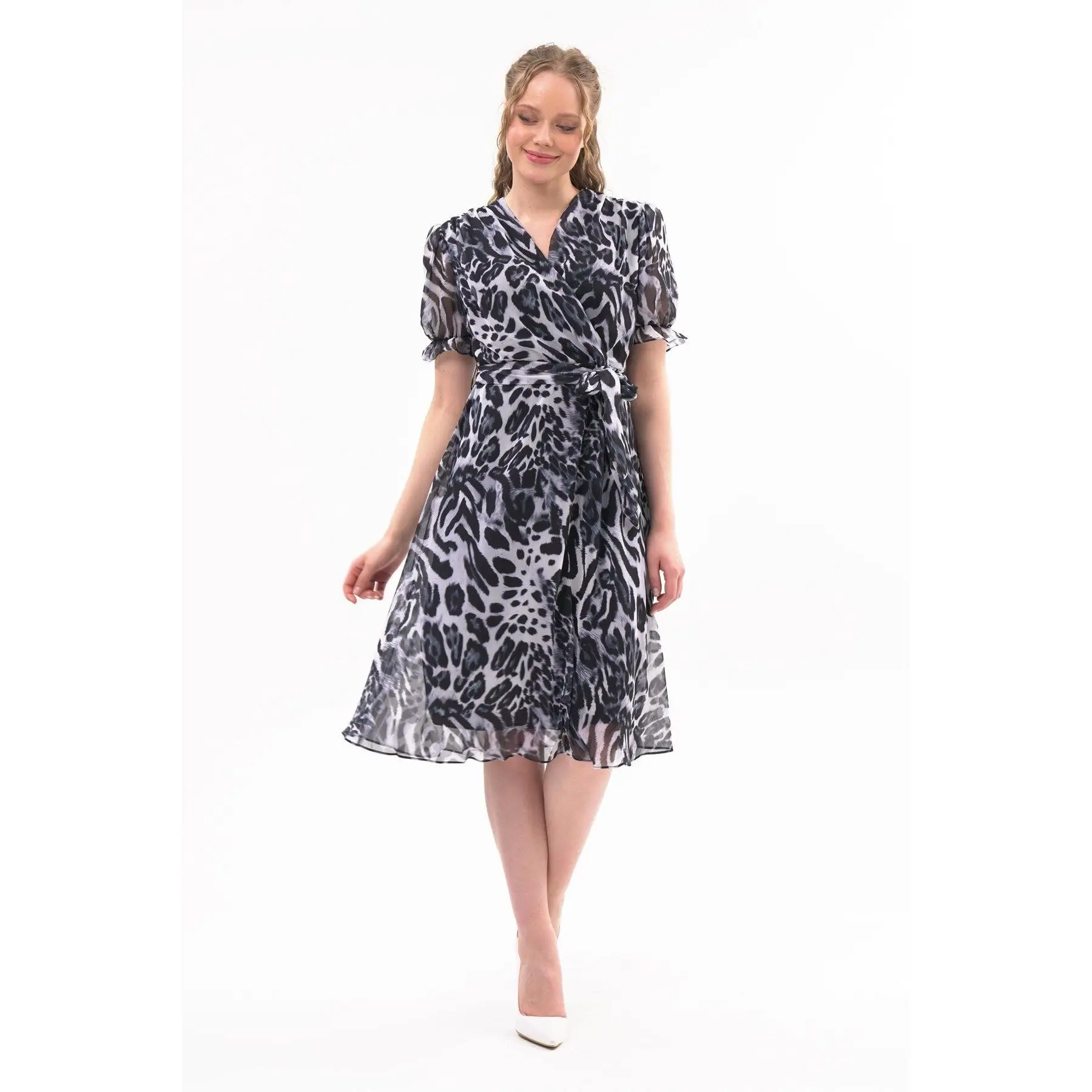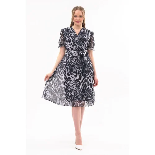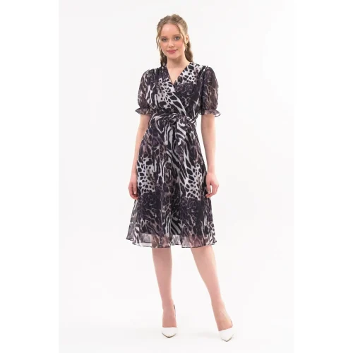 Product Name: Women’s Leopard Print Double Breasted Midi Chiffon Dress 4431/110 Manufacturer in Turkiye Sexy Casual Wear