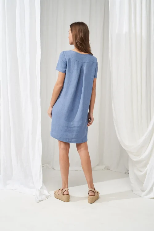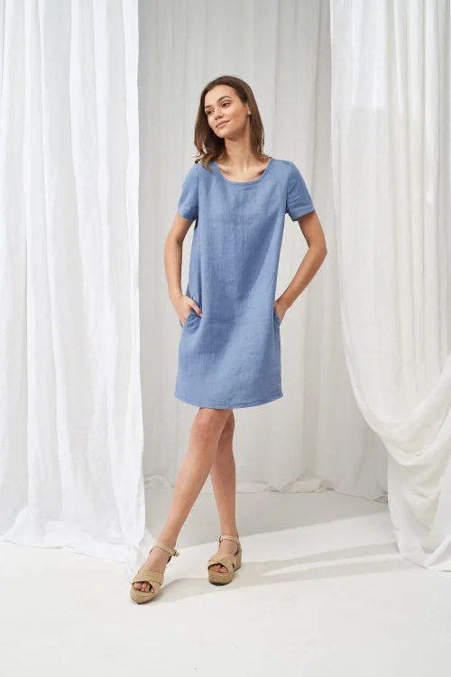 Product Name: Women’s Linen Casual Dress Short Sleeves Vintage Summer Breathable Chiffon Solid Knee-Length Natural Waistline Short Sleeve