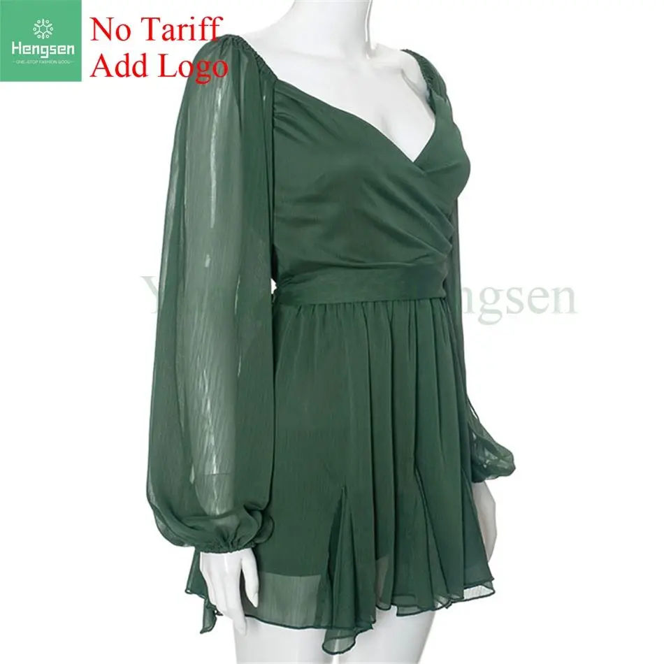 Women’s Long Sleeve Office Ladies Sexy Folding Suspender Ruffle Slim Fit Dress