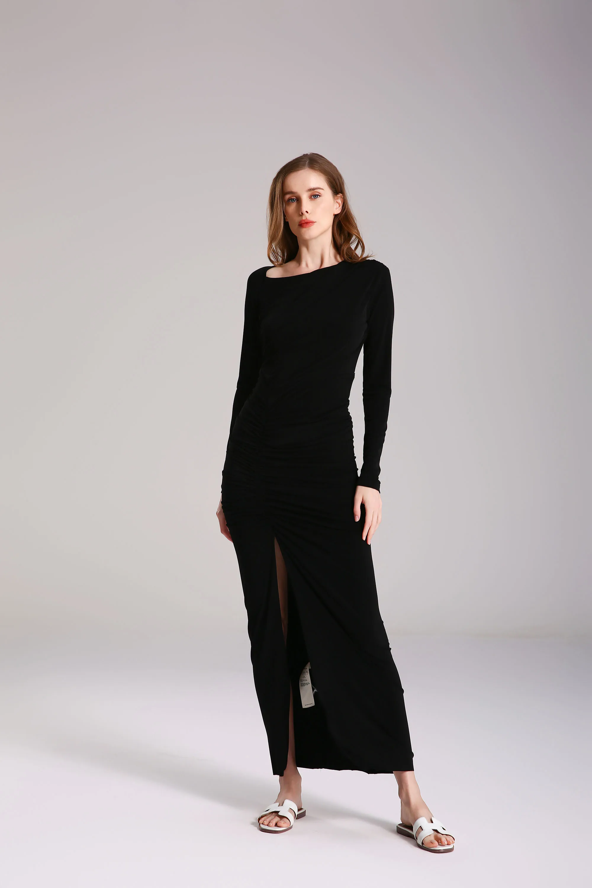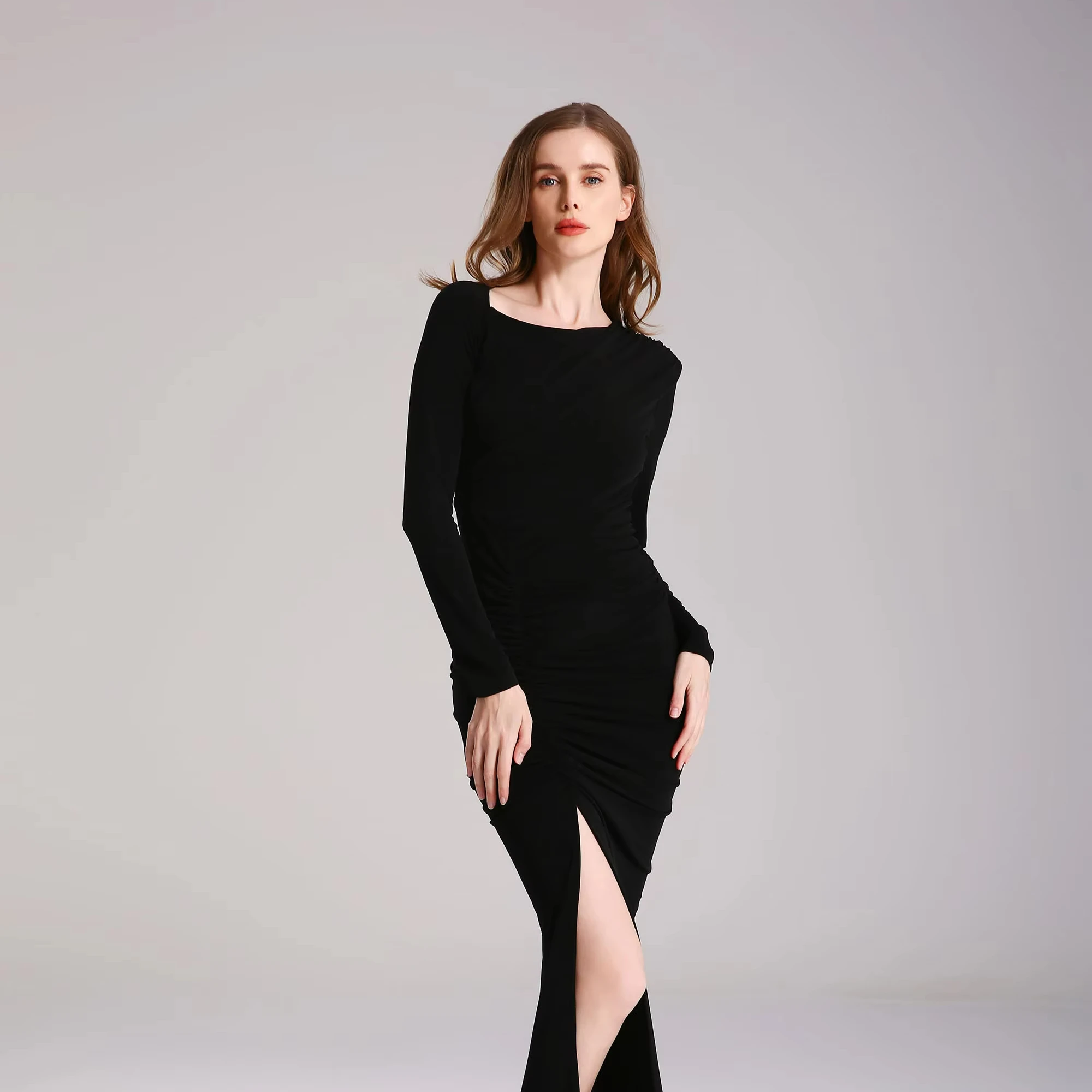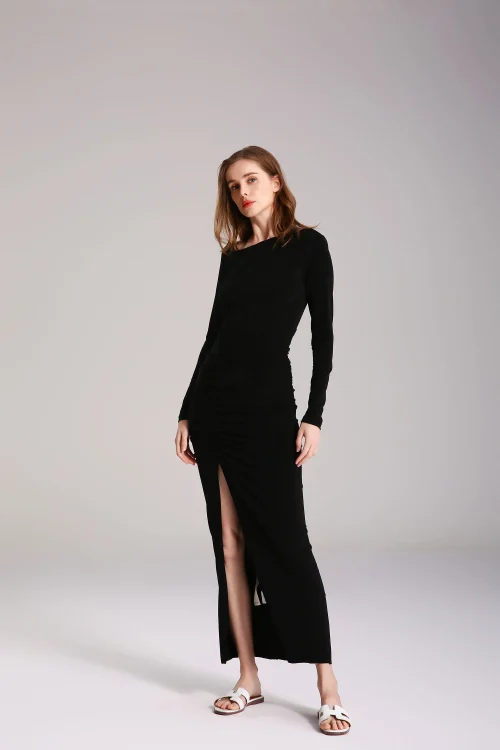 Product Name: Women’s Long Sleeve Side Gathered Slit Detail Camisole Midi Dress Floral Print Cotton Elegant Casual Sexy Style XXL Beach Party