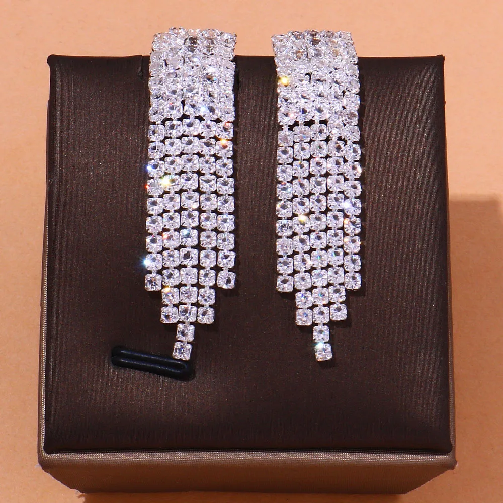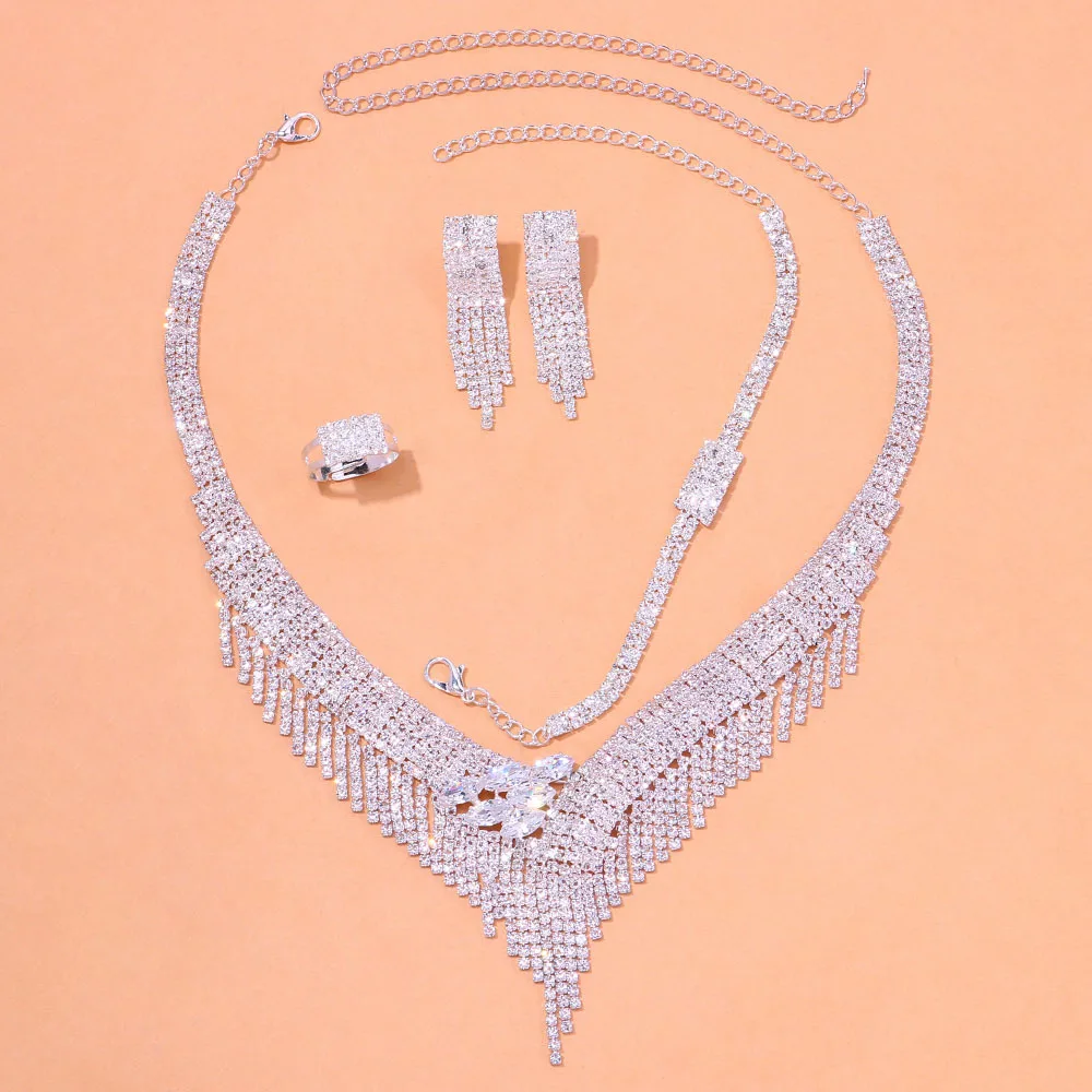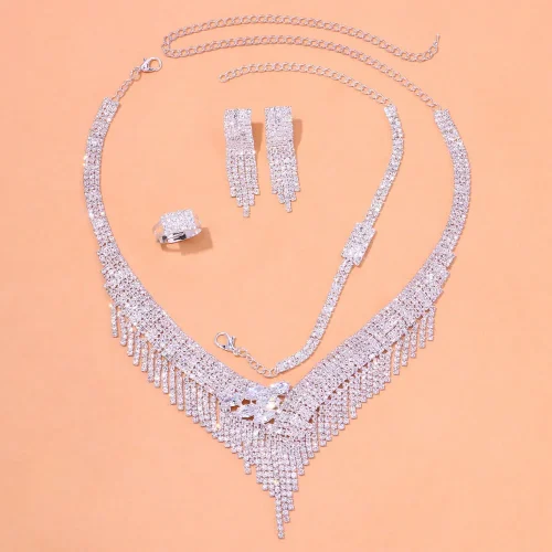 Product Name: Women’s Luxury Jewelry Set Tassel Crystal Necklace Earring Ring Bracelet Wedding Bridal Jewelry Set