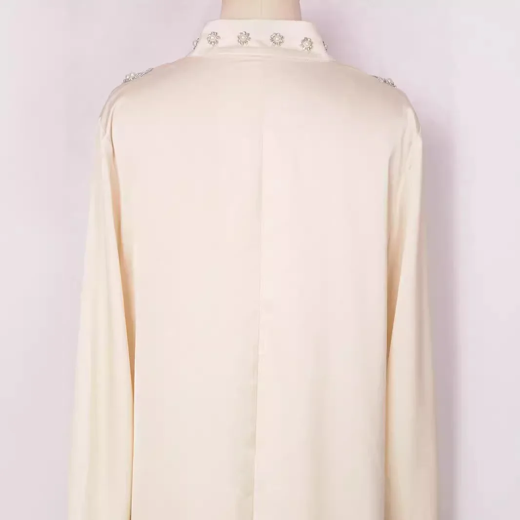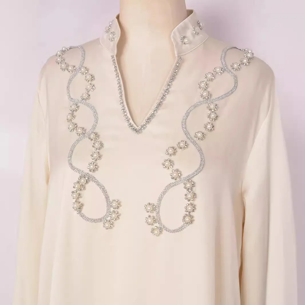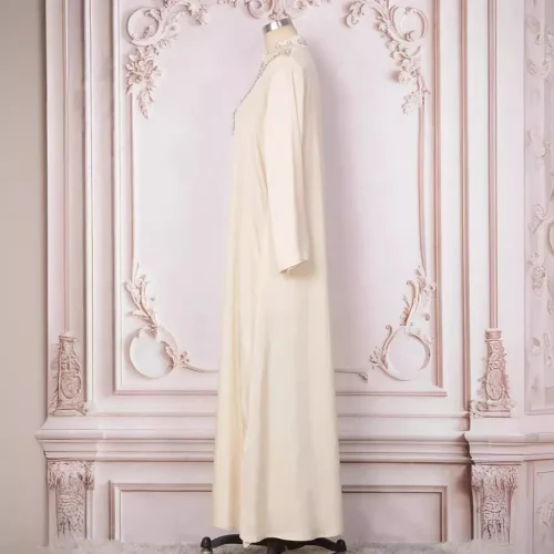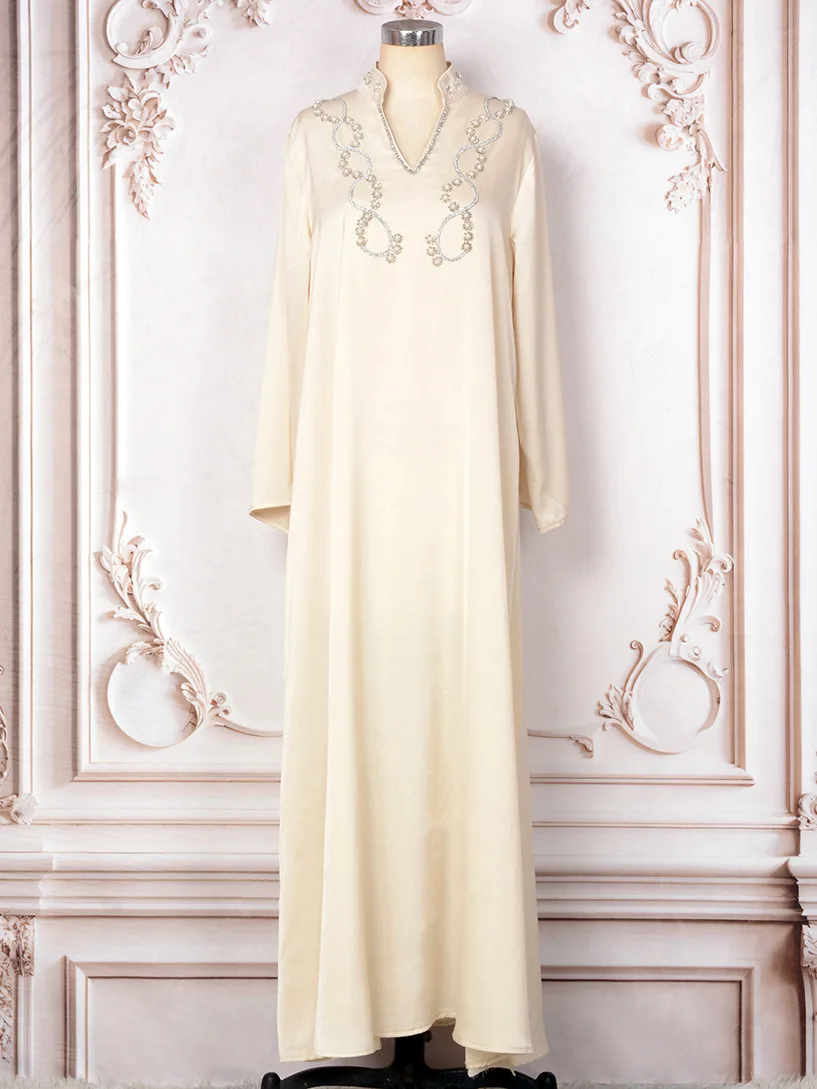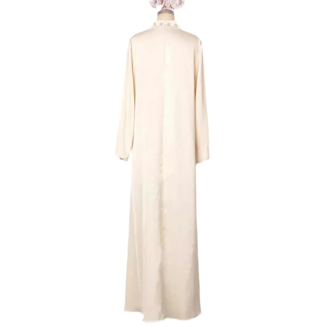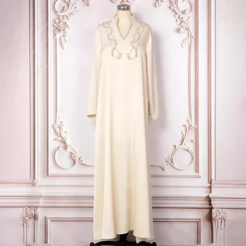 Product Name: Women’s Muslim Dress Solid Color Heavy Industry Beads Long Dress