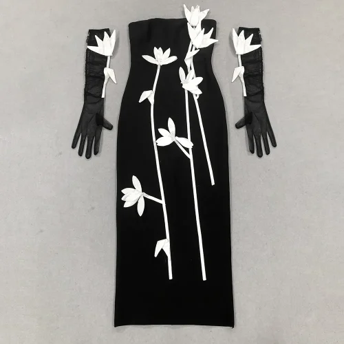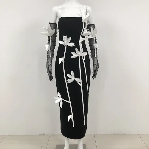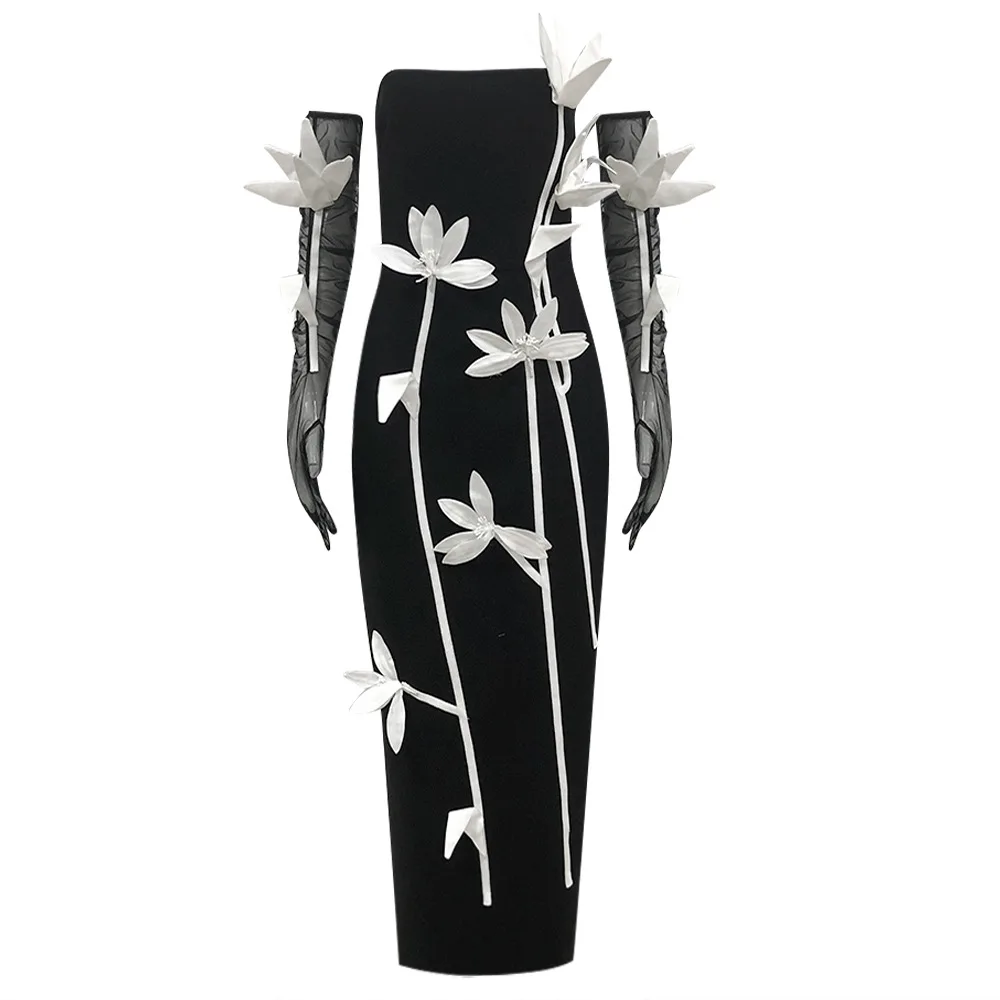 Product Name: Women’s New Black Off Shoulder Sleeve Flower Sexy Show Celebrity Cocktail Party Dress