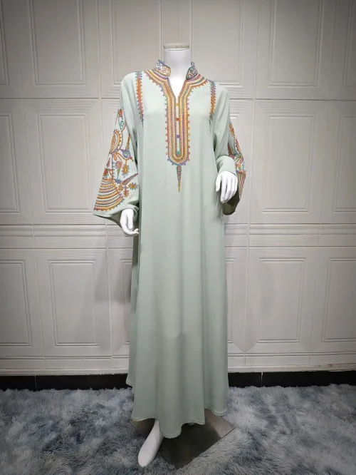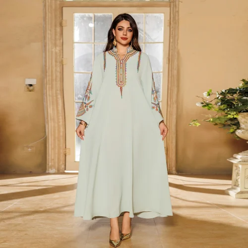 Product Name: Women’s New Independent Station XXL Embroidered Rope Abaya High Polyester Modest Casual Pullover Dress Robe Middle East Muslim
