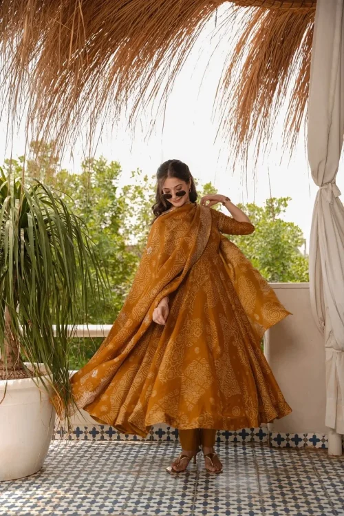 Women’s Pakistani Style Anarkali Flared Embroidery Work Rayon Suit Ladies Indian Dress for Parties with Dupatta Included