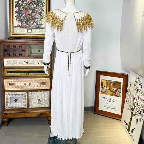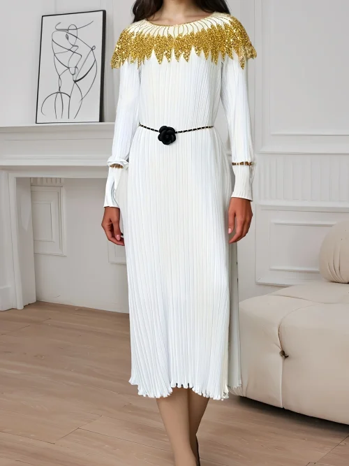 Product Name: Women’s Pleated Elegant Dress Formal Office Lady Print Solid Pattern Puff Sleeves Belt Buttons XL for Party Vacation Day