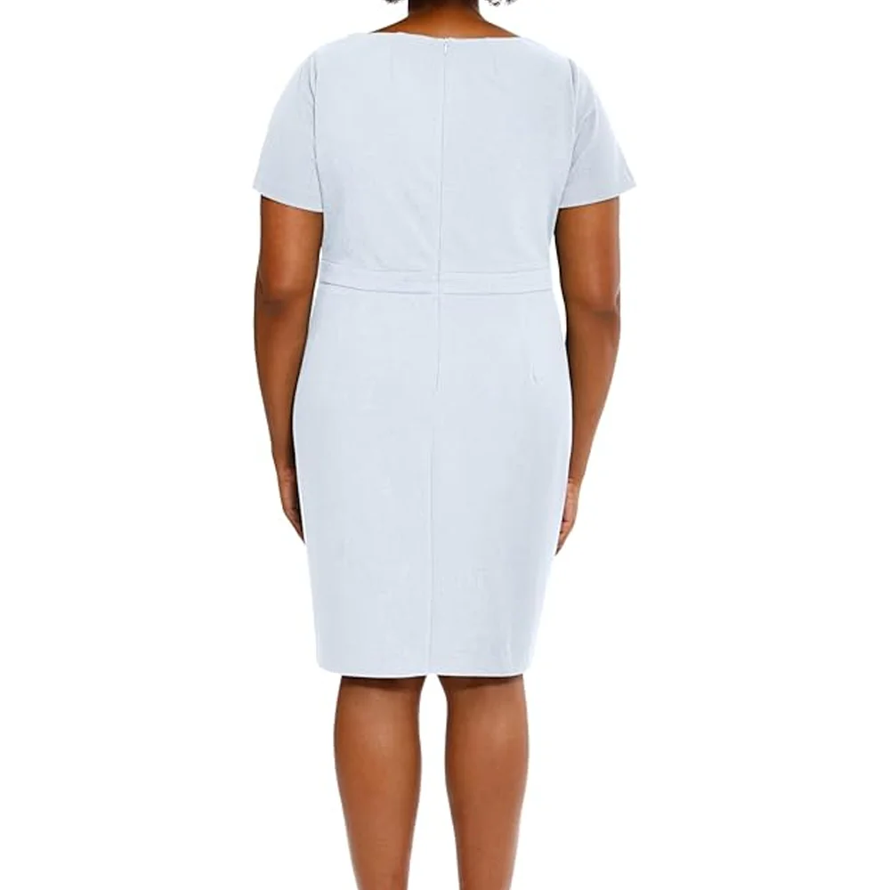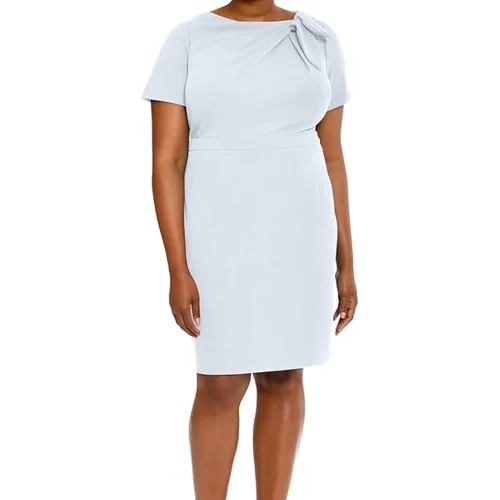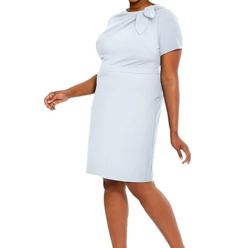 Product Name: Women’s Polished Sheath Dress with Bow Workwear Dress Career Office Desk Trending V-neck Women’s Curved Waist Seam Crepe