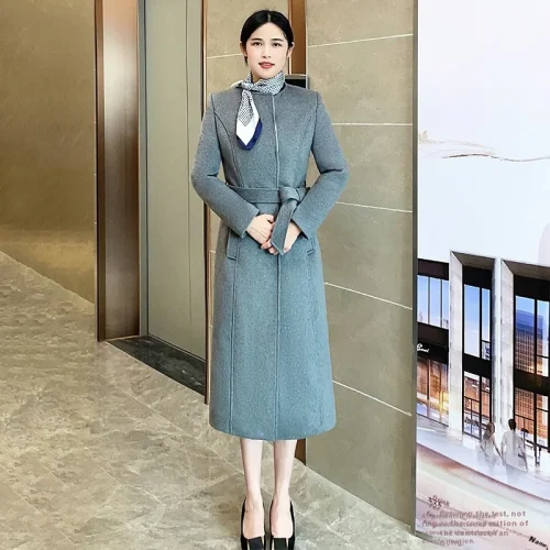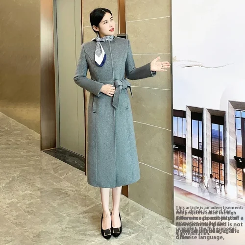 Product Name: Women’s Professional Wool Mid-Length Winter Overcoat Breathable Front Desk Sales er Service Workwear for Office