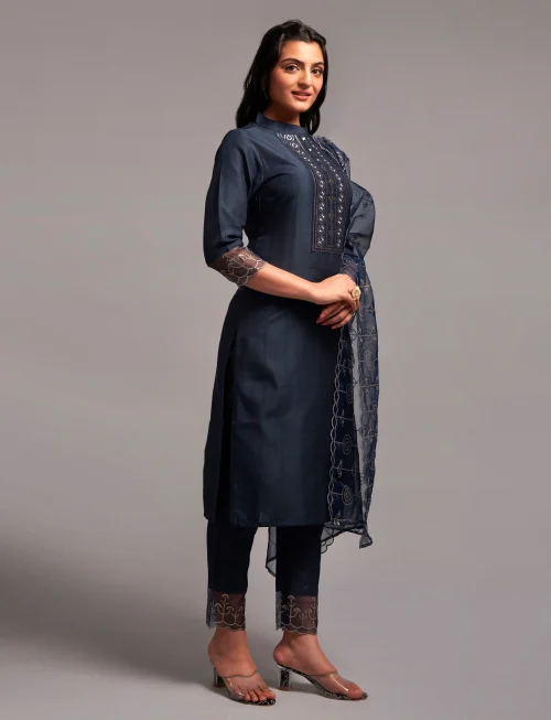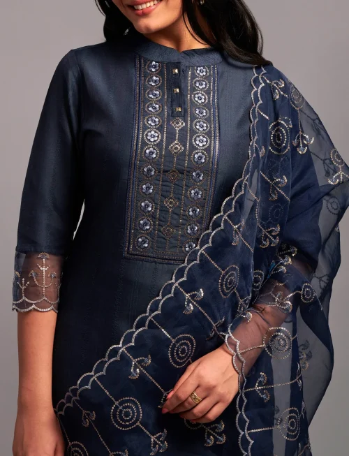 Product Name: Women’s Sequence Embroidered Silk Kurta Set with Pant Dupatta Long Pakistani Style Rayon Dress Casual Party Occasions Stitched