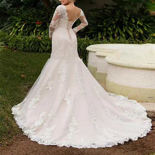 Product Name: Womens Sexy Prom White Bridal Dresses Sexy Backless Tulle Lace Appliques Mermaid Beach Wedding Dress for Bride