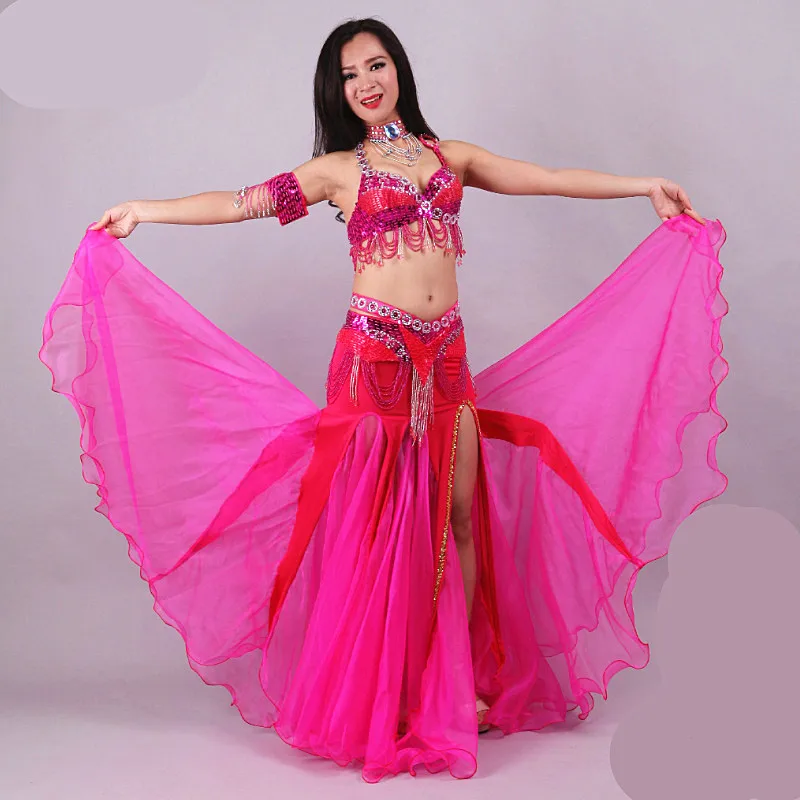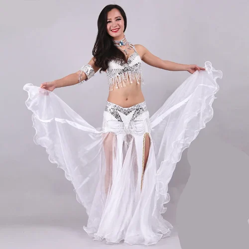 Women’s Sexy Three-Piece Performance Wear Set Printed Stage Belly Dance Dress Including Bra Skirt Belt for Adults Girls’ Parties