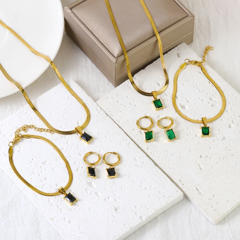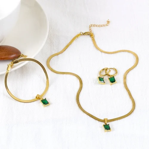 Product Name: Women’s Stainless Steel Jewelry Set Gold Plated Earring Bracelet Necklace with Zircon Stone for Party Gift Anniversary