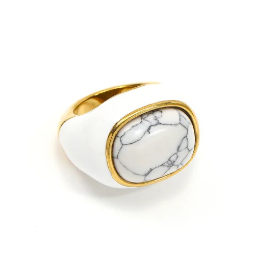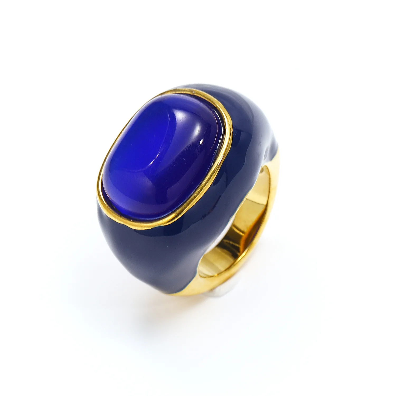 Product Name: Women’s Trendy 18K Gold Plated Titanium Steel Rings Luxury Exaggerated Enamel Inlaid Natural Gemstone Fashion Jewelry