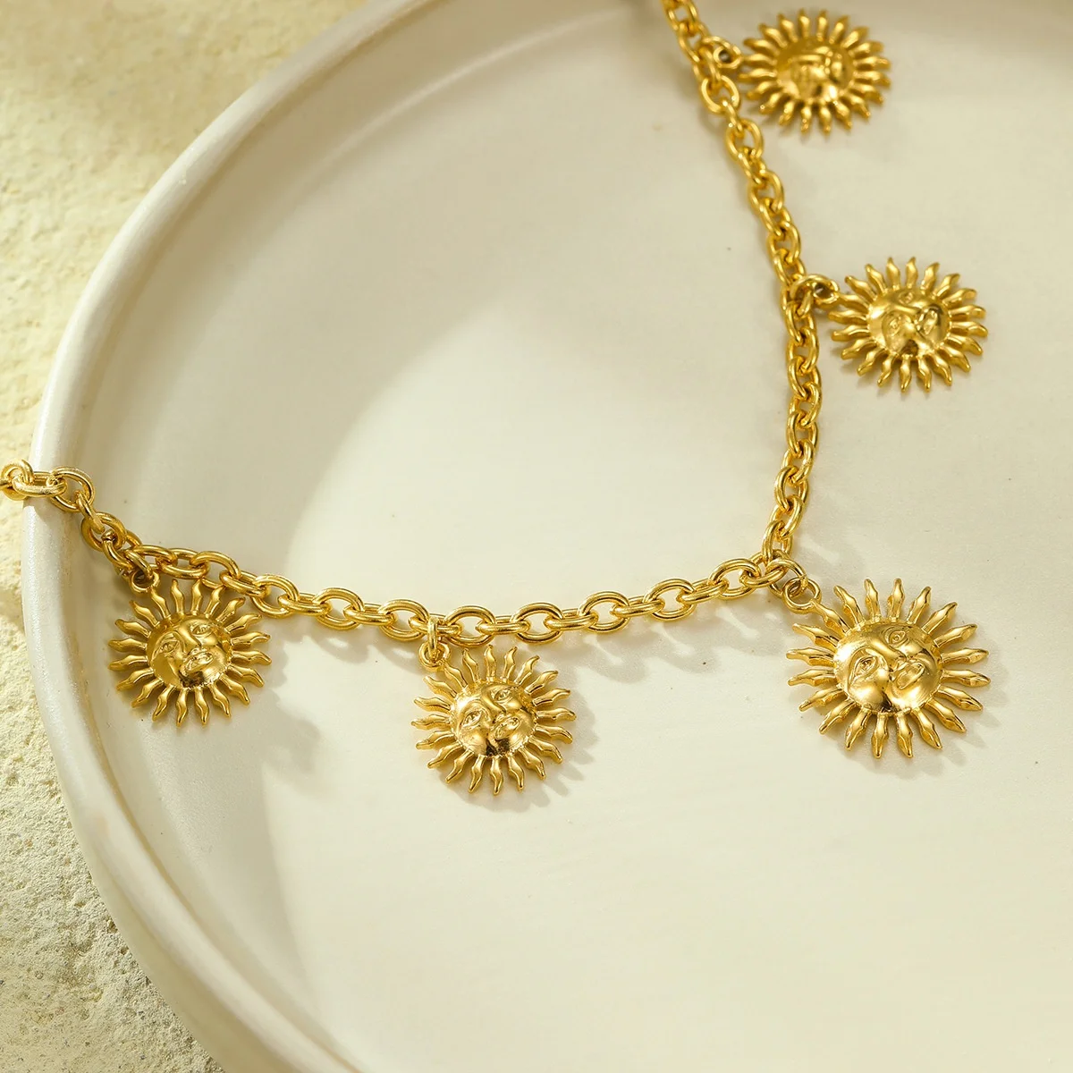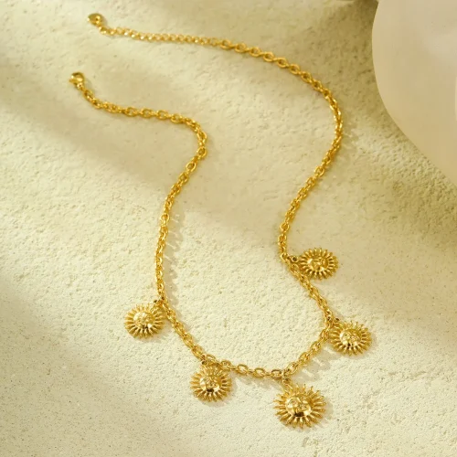 Product Name: Women’s Trendy Sunflower Pendant Necklace Fine Jewelry with Gold Plated Stainless Steel Link Chain Flower Shape Pattern