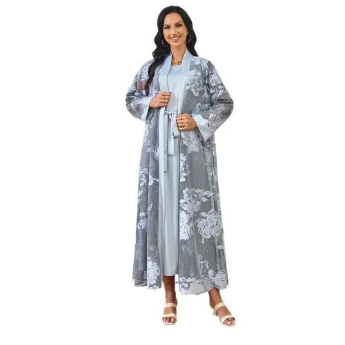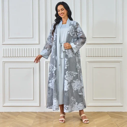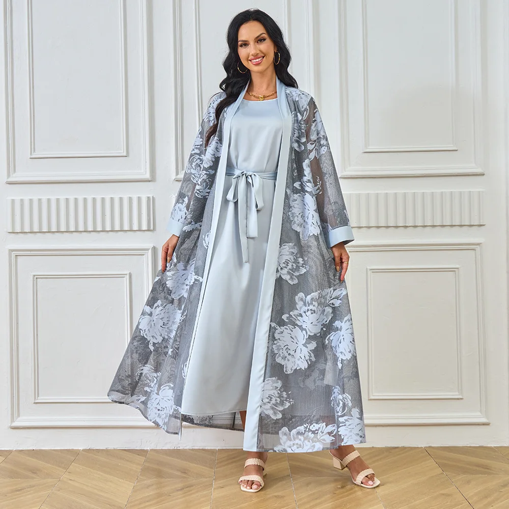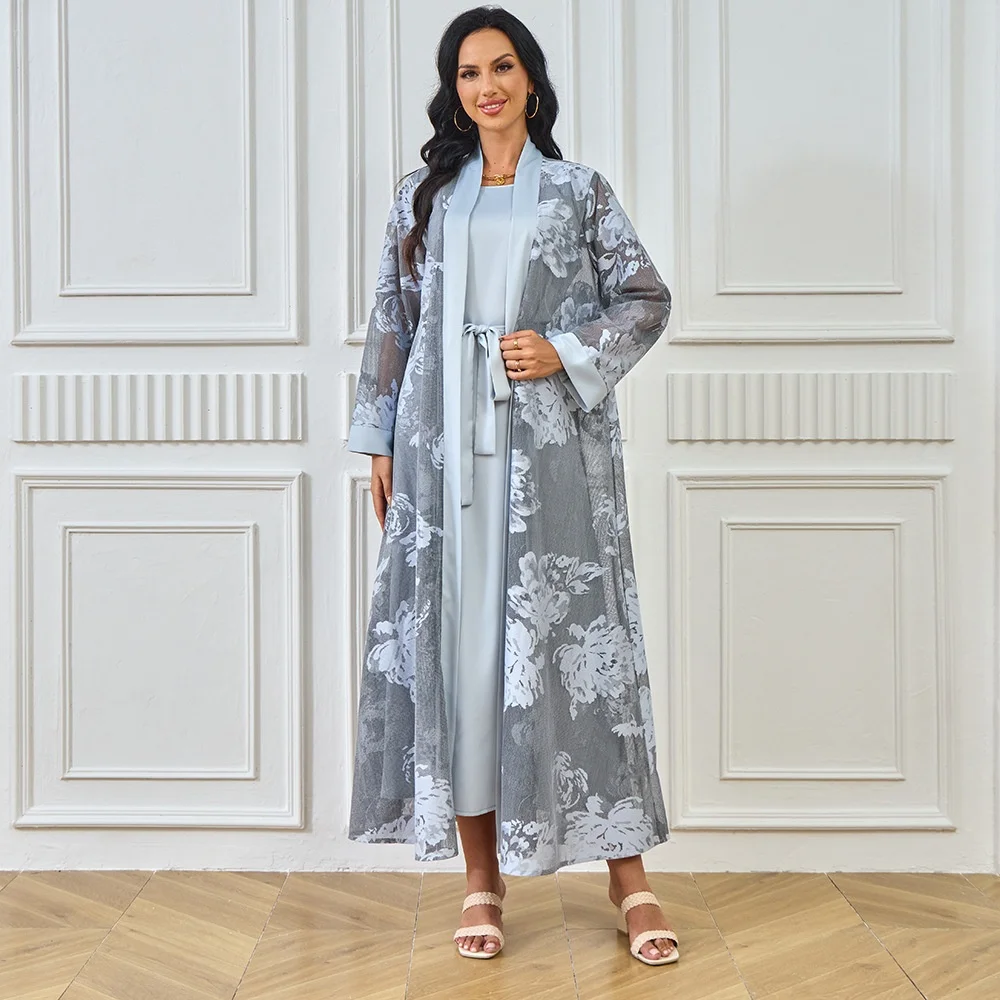 Product Name: Women’s Two-Piece Kaftan Dress Casual Print Cardigan Dubai Robe Breathable Abaya for Autumn Spring Inspired Middle Eastern Arab