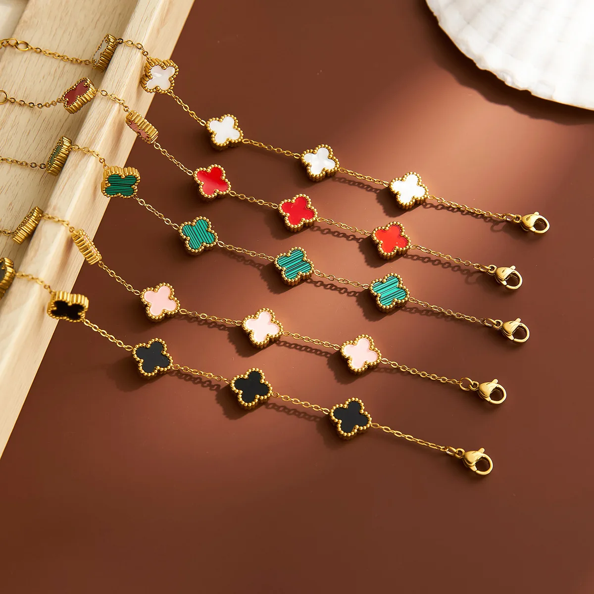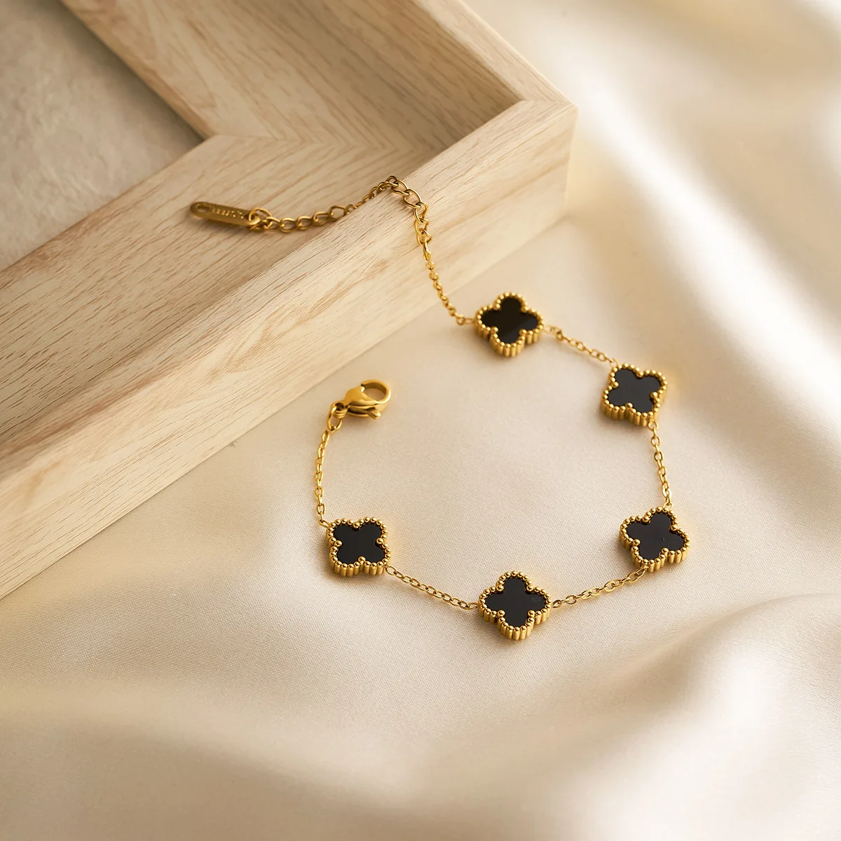 Women’s Versatile Fashion Bracelet Cross-Border Popular Double-Sided Lucky Clover 18k Gold PVD Plated Stainless Steel Bracelet