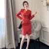 Product Name: Women’s Vintage Style Empire Dress Handmade PU Anti-Static Silk Screen Printing Long Sleeves Sexy for Church Casual Use Spring