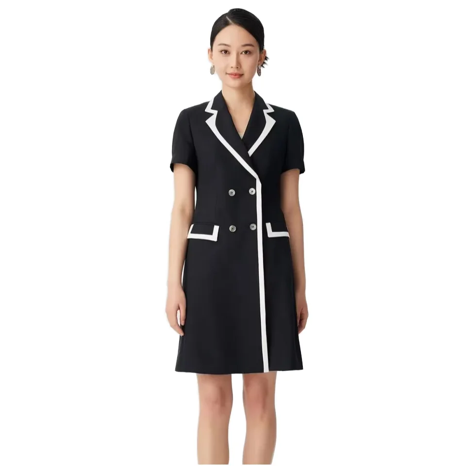 Women’s Vintage Style Long-Sleeved Empire Dress Handmade PU Anti-Static Silk Screen Printing Mandarin Collar for Church Casual