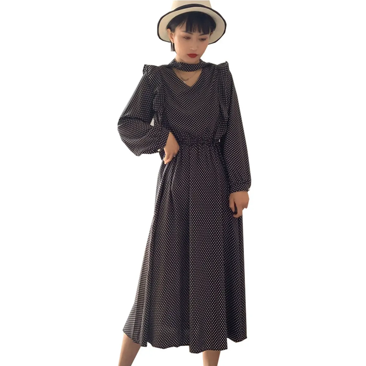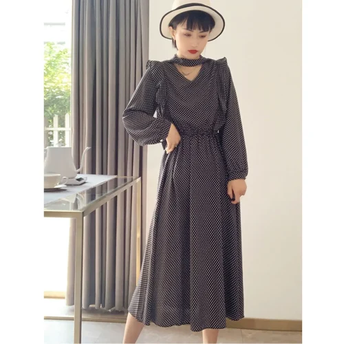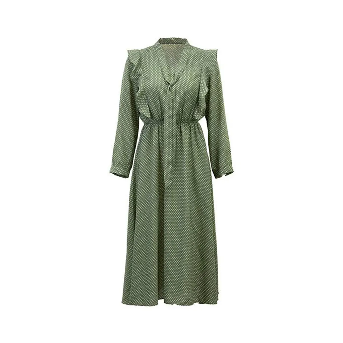 Women’s V-neck Dress Casual Long Printed Dress Summer a Retro Natural a Line Casual Dress