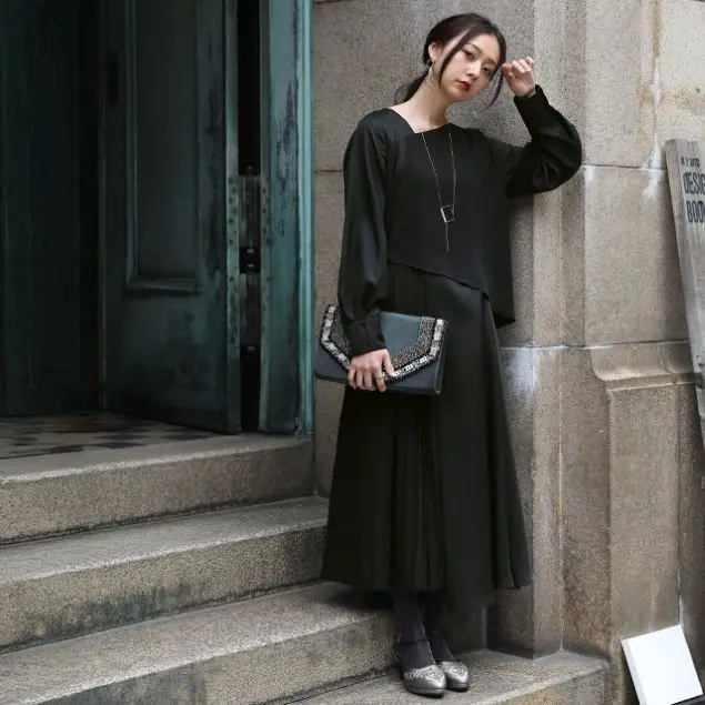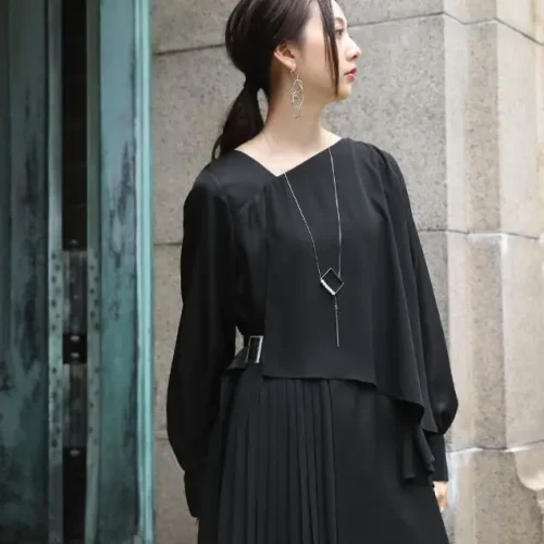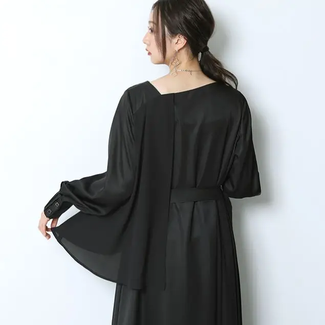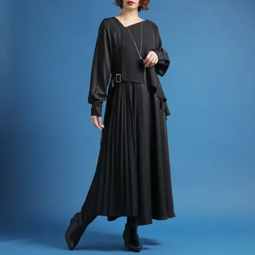 Product Name: Women’s V-Neck Long Sleeve Chiffon Dress Long Length Home Washable Lined Mixed Different Materials for Fall Winter Casual Party