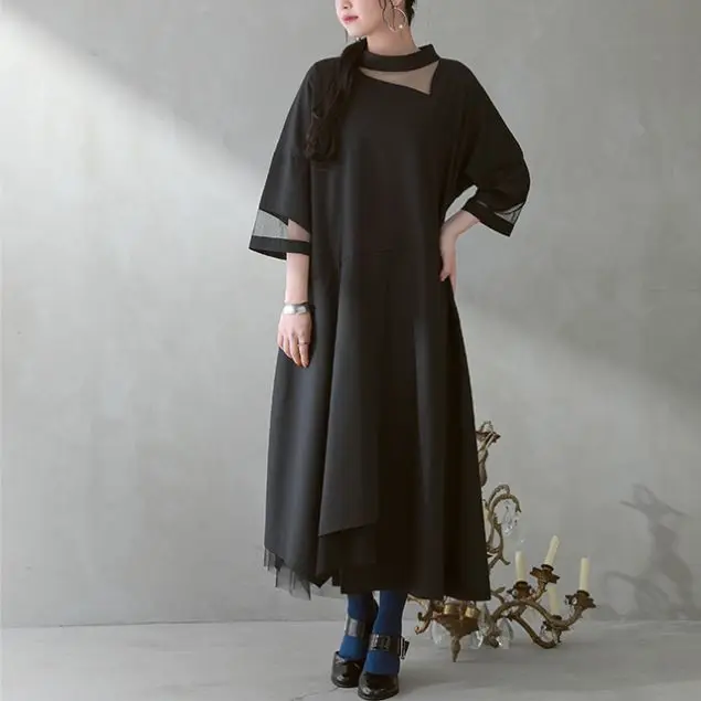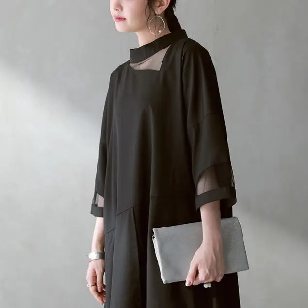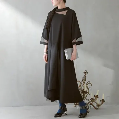 Product Name: Women’s XL Size Free Size Stand-Up Party Dresses Casual Black Dresses for 10s 20s 30s 40s 50s 60s Covering Chubby Body