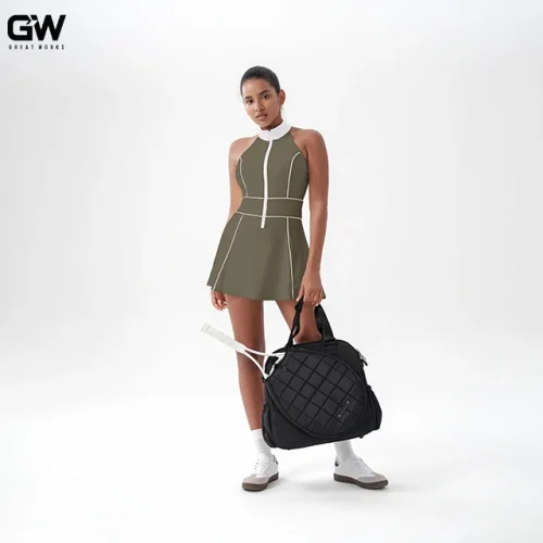 Women’s Zipper Collar Straight Fitting Tennis Dress Breathable Contrast Color Sleeveless Polo Golf Dress