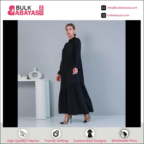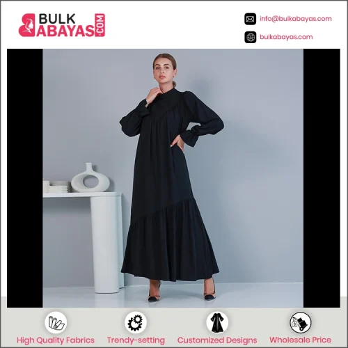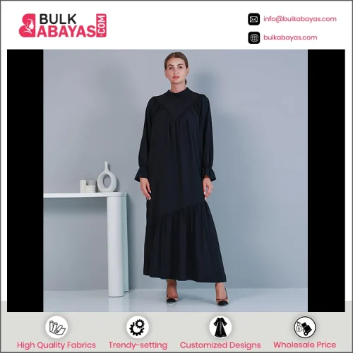 Product Name: World’s Best Indian Manufacturer of Top Quality Muslim Dress Black Color Abaya with Pleated Work on Front and Back