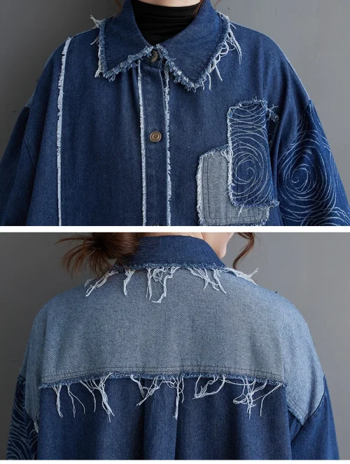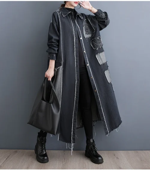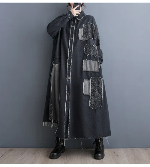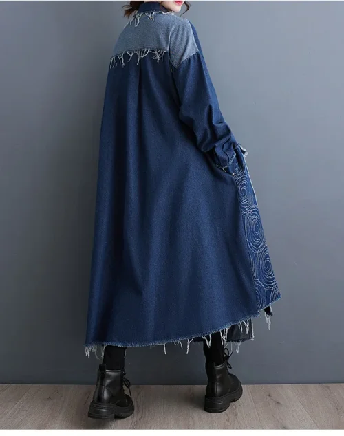 Product Name: X5020 Plus Size 2025 Autumn Winter Loose Retro Double Side Denim Patchwork Dress Coat Women’s Dress