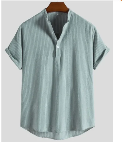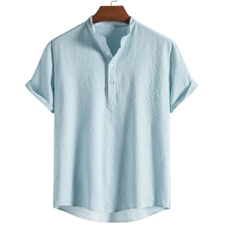 Product Name: XH44 Summer 2022 Men Shirts Casual Linen Material Tops Resort Short Sleeve Slim Breathable Shirt