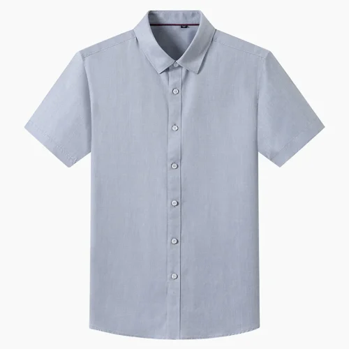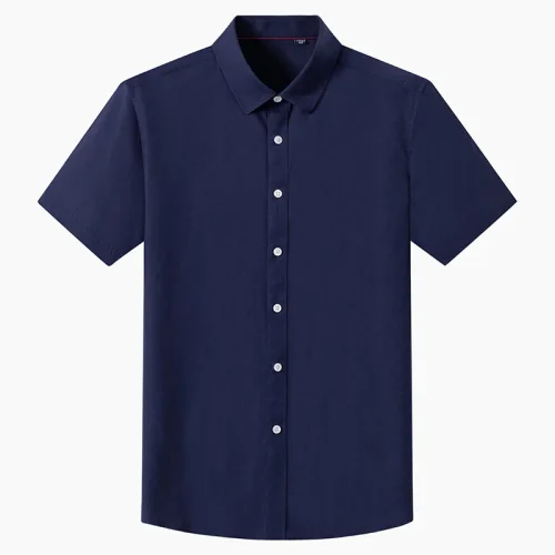 Product Name: XHJ188-nron Oxford Spinning Work Short Leeved Men Shirts Solid Color Light Business Embroidery Easy Care Cotton Shirt
