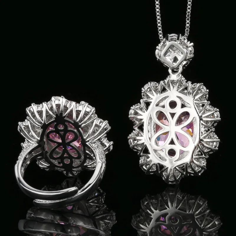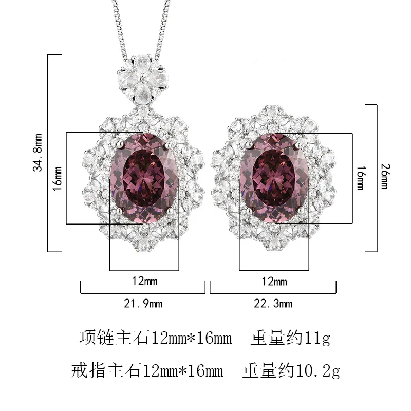 XILIANGFEIZI French Super Beautiful Jewelry Copper European American Imitation High-end Pendant Necklace Ring Set 12*16