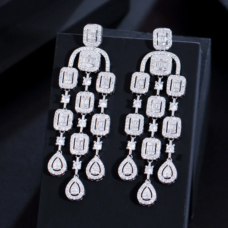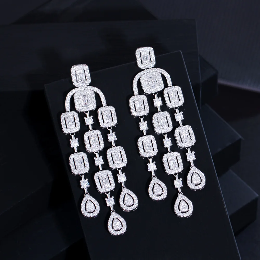 Product Name: XILIANGFEIZI High Cross-border European and American Exaggerated Tassel Zircon Earrings S925 Silver Needle Fashion Full Diamond