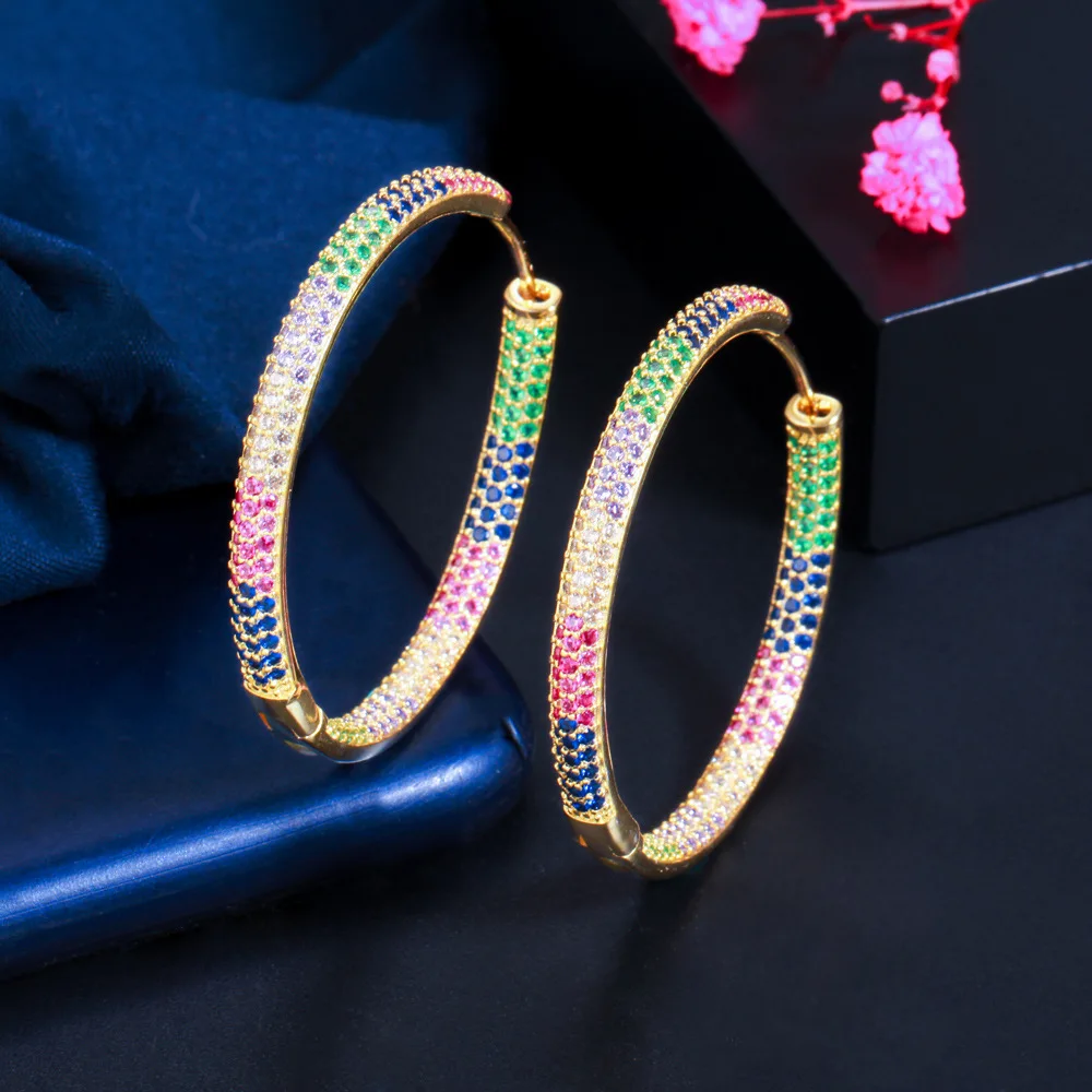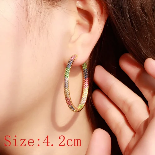 Product Name: XILIANGFEIZI High European and American Popular Accessories Large Earrings with Slightly Set Copper Zircon, Gold and Black